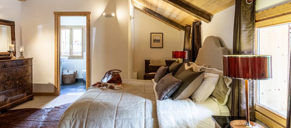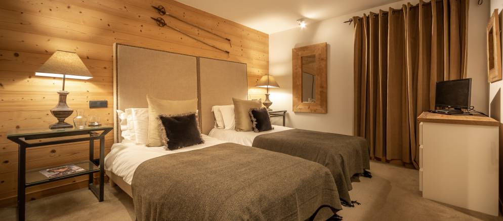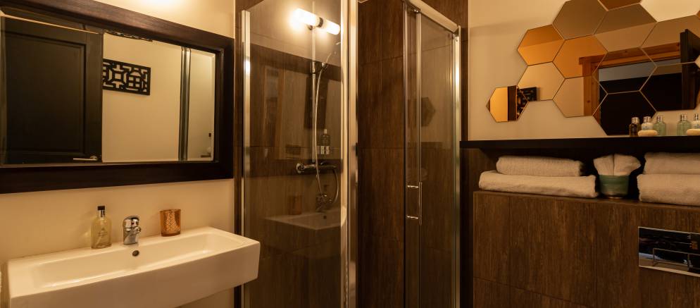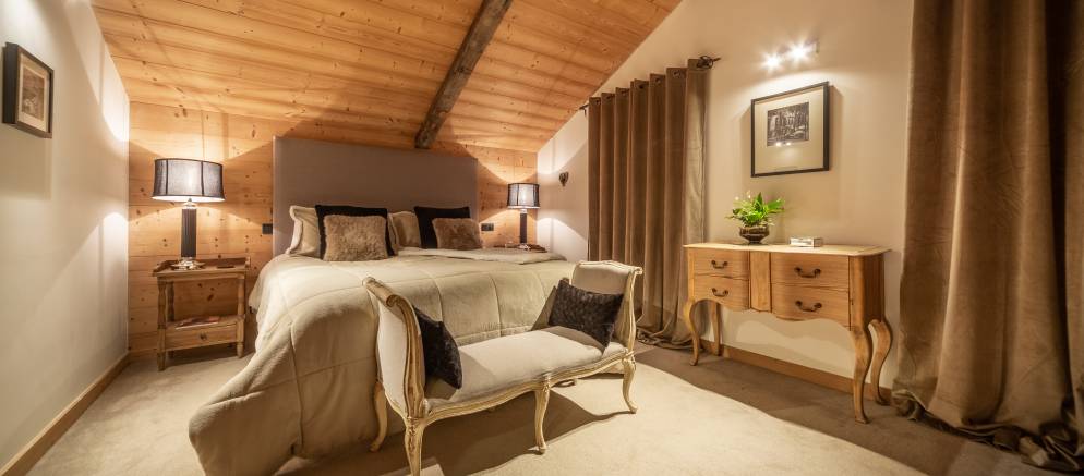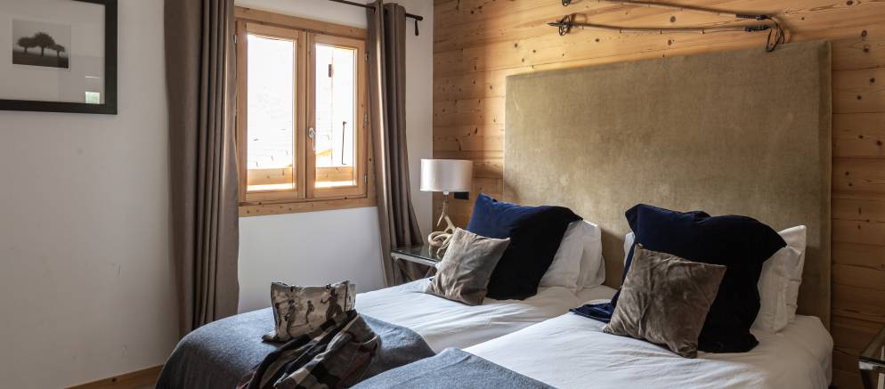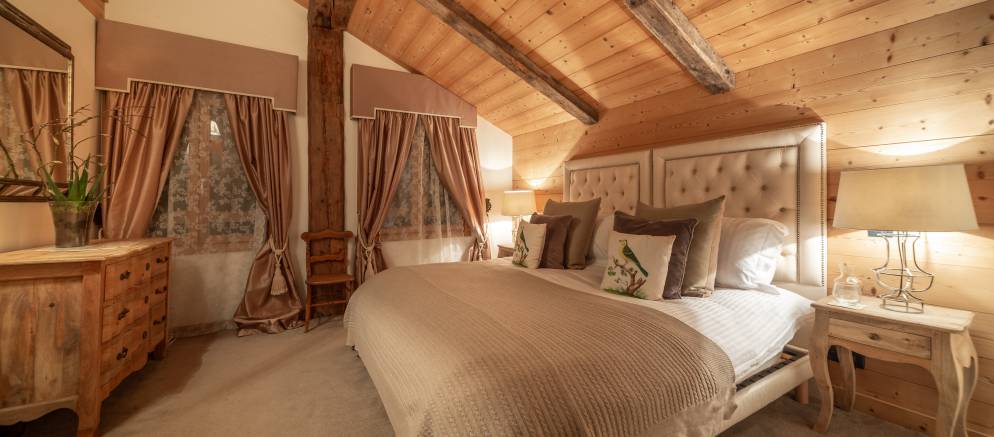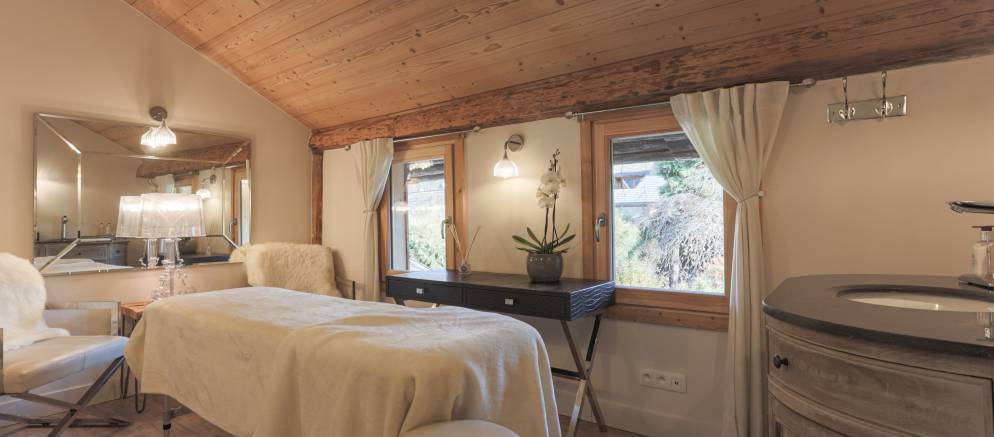 The chalet can sleep 12-15 guests and upstairs there are six en-suite guest rooms as well as a dedicated massage room. All six bedrooms can be arranged with either king-size double or twin beds making the chalet perfect for all group configurations. In addition, it is possible to turn three bedrooms into triples to increase the occupancy to 15.