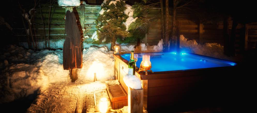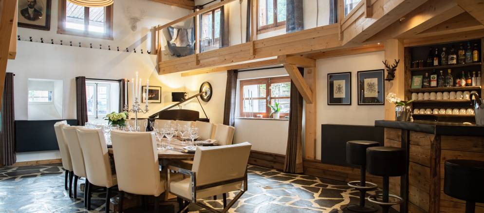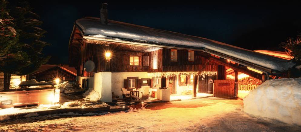 Arranged over 325m2 of living space and two floors, the chalet is tucked away within its own grounds with private driveway. As soon as you arrive you will know that you are staying somewhere special. The hot tub is tucked away for your own private après ski enjoyment and in the Spring months you can enjoy the outdoor terrace.