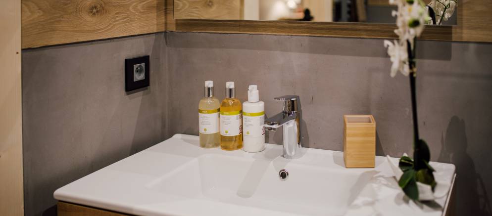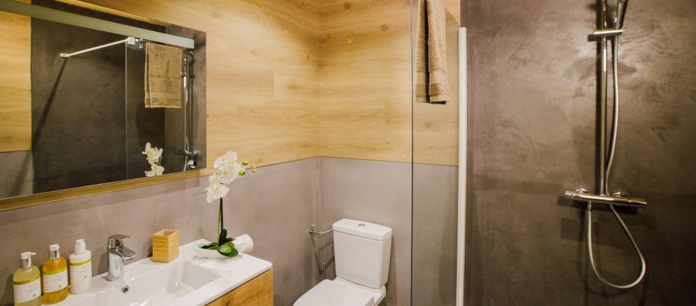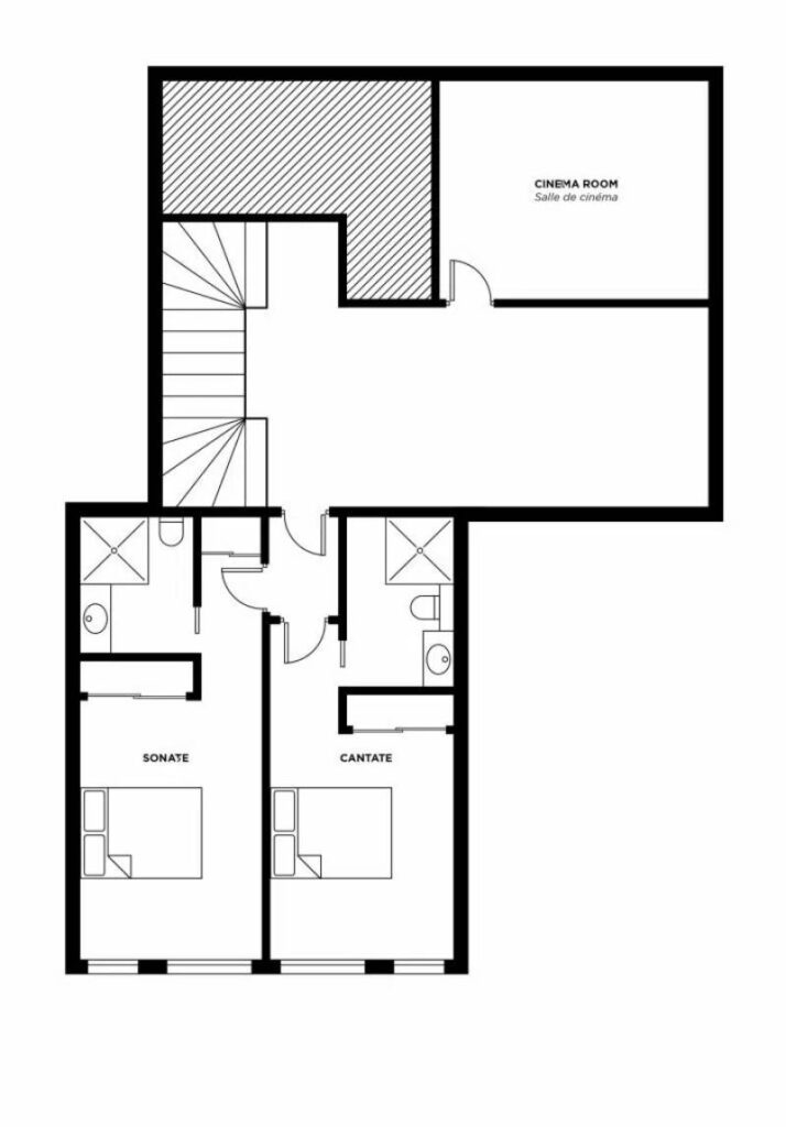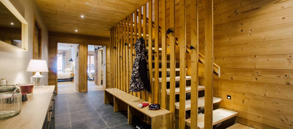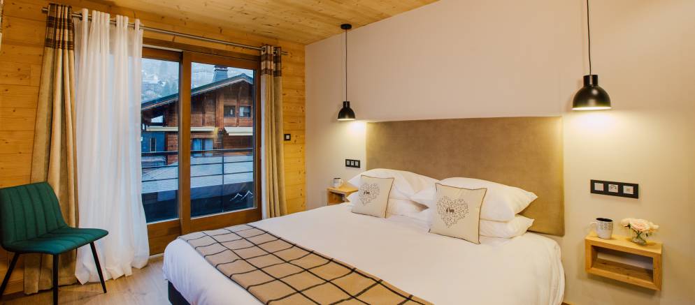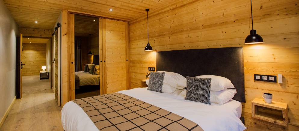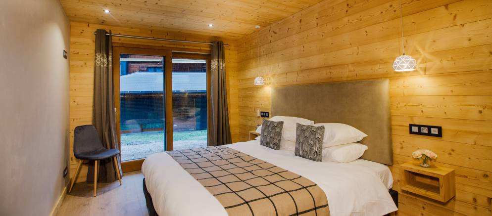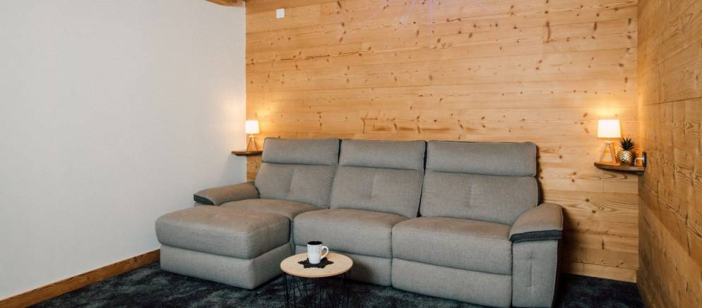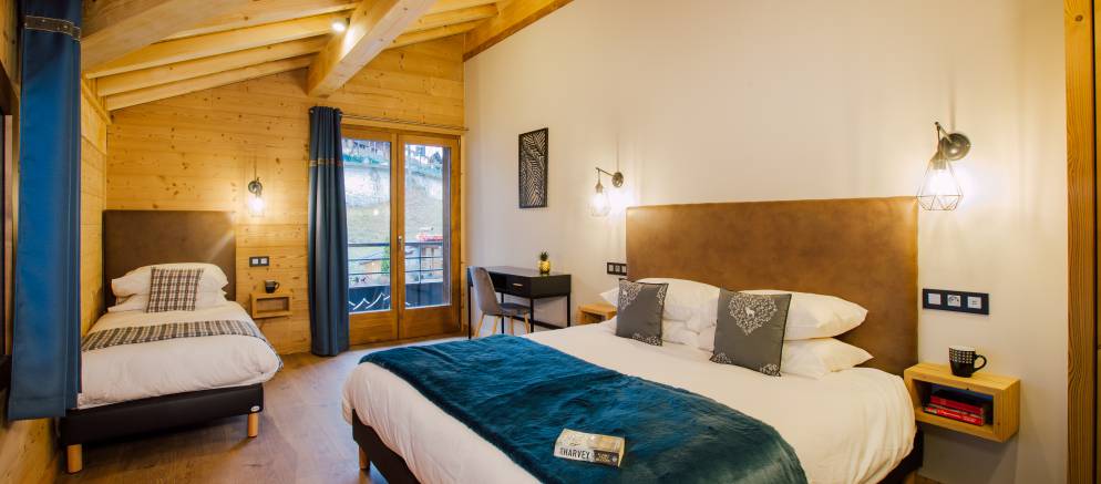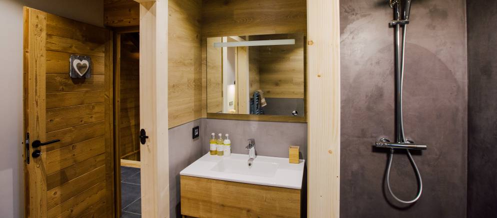 The chalet is arranged over three floors and sleeps 12-13 people in 6 en-suite bedrooms. There are two bedrooms on the lower floor, three bedrooms on the middle floor with the sixth bedroom on the top floor. All the rooms can be arranged with either double or twin beds affording maximum flexibility for different groups or several families. The sixth bedroom also has an additional single bed making it perfect as a family room.