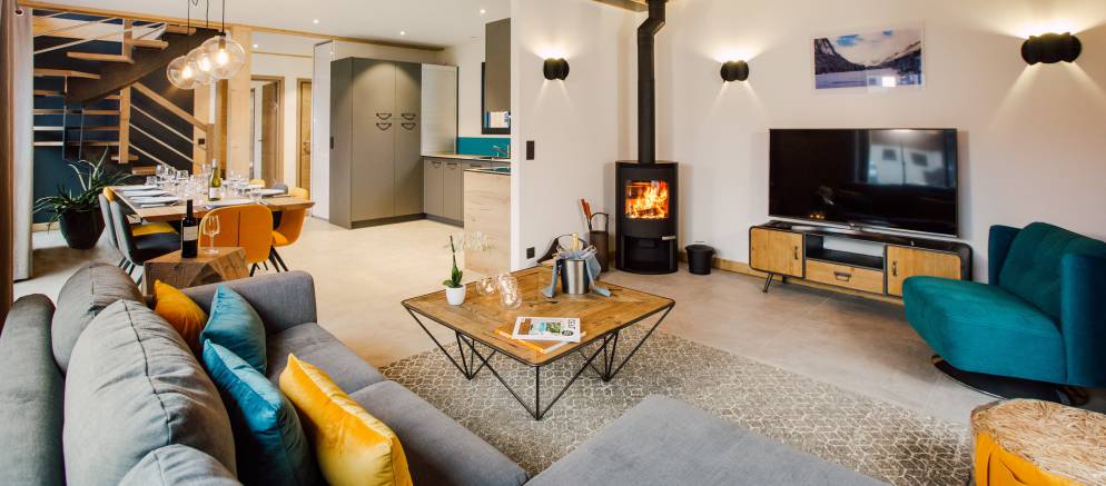 The open plan living room provides plenty of space for a couple of families or group of friends. Step outside and discover your private hot tub which is the perfect spot post skiing, whilst upstairs there is a separate TV / games area. Whether you are enjoying the open fire or the superb views over Morzine from the hot tub, the chalet will be the perfect base for your ski holiday.