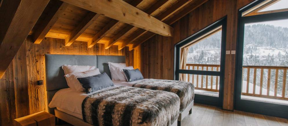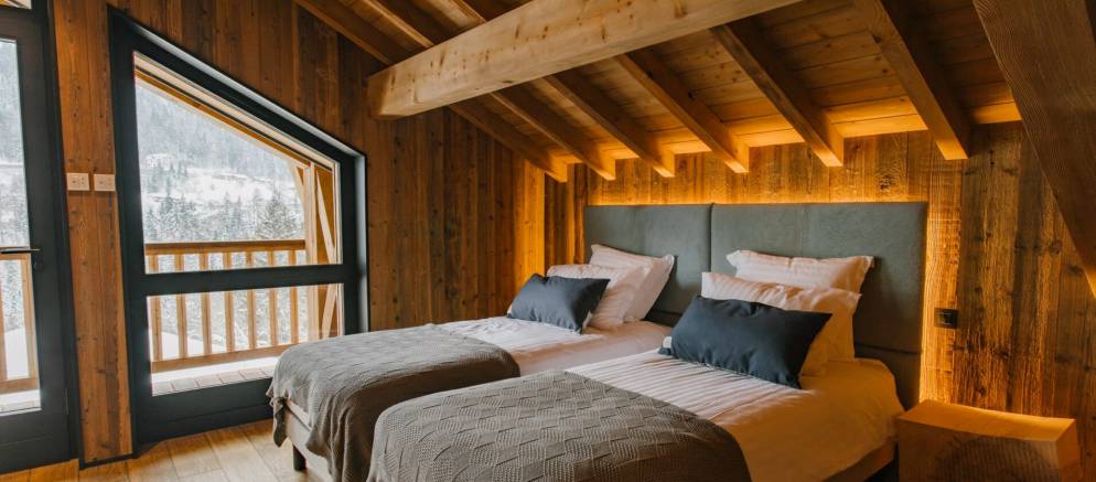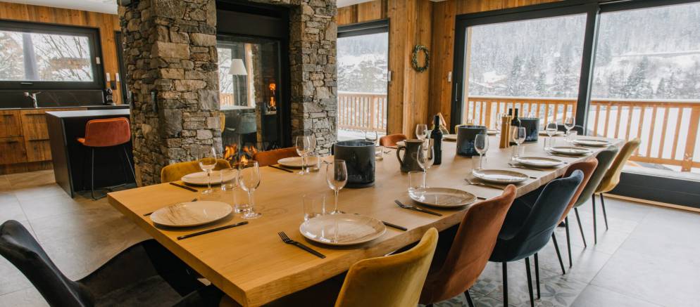 The chalet is in a tranquil spot in Morzine on the border with Montriond, and the chalet’s shuttle service will whisk you to and from the ski lifts each day. You can also get around easily with access to ski lifts in both directions accessed via the free resort buses that stop just a few hundred metres from the chalet. You can also walk into the centre of Morzine via the footbridge in under 15 minutes.