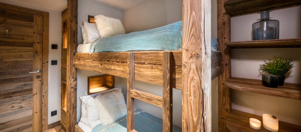 The chalet is arranged over three floors and can accommodate up to 8 people in four bedrooms. Step inside on the lowest level and you will find a homely entrance hall leading to a bunk room and a separate shower room. There is also access into the garage and a ski/boot room beyond, so there is storage for both your ski gear in winter, or your bikes and hiking gear in summer.