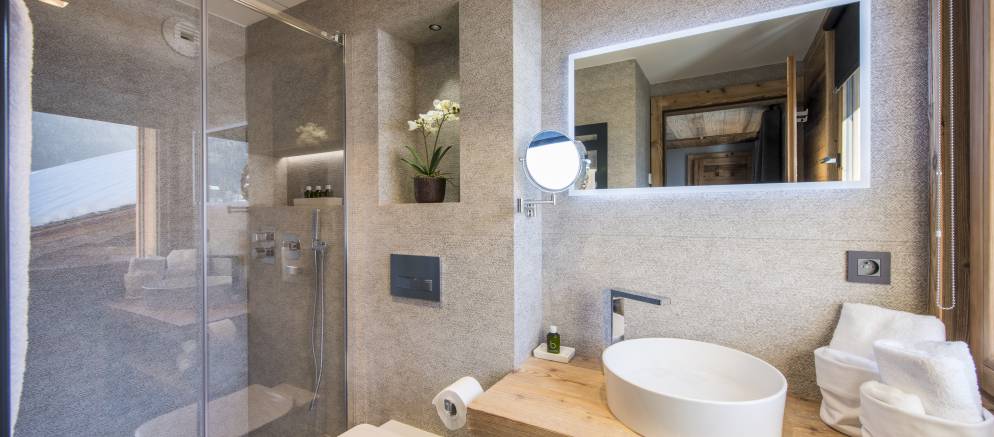 The two stunning master suites feature high ceilings that show off the wonderful mountain views. Each room has its own USP, some have dressing rooms or freestanding baths and others have walk-in drench showers. All 6 bedrooms feature a super-king bed that can split to twin beds as required, making the chalet perfect for either families or groups of friends.