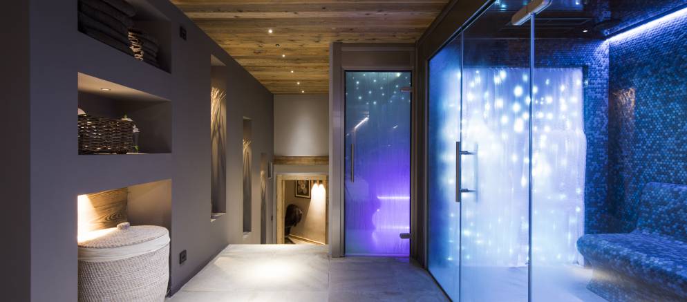 Inside Chalet Sapphire, the stunning and spacious spa and wellness area features an indoor swimming pool with massage and counter current jets as well as a view of the mountains. Then there’s the Hamman, ice chamber and spa. Outside, guests can relax in the large sunken hot tub and the barrel sauna with views over the resort. Alongside the fantastic spa facilities there is a well-equipped gym, and forest trails starting at the foot of the garden.