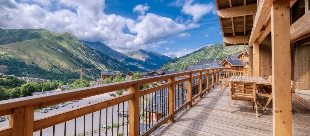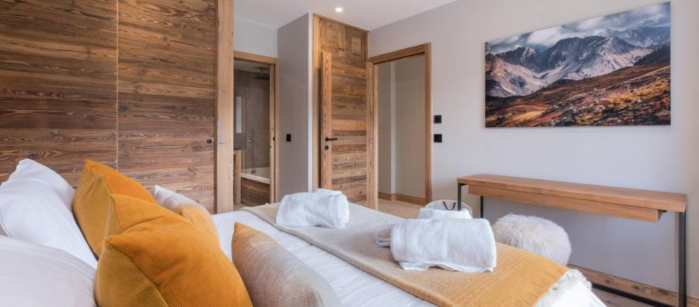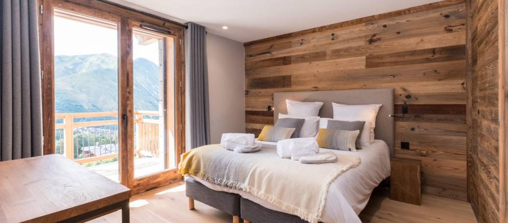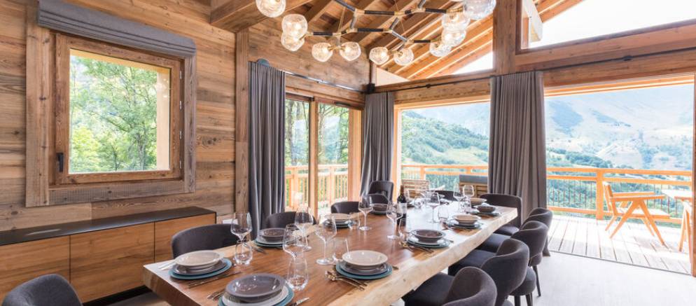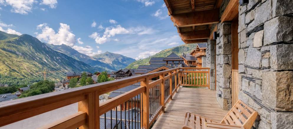 Chalet Acolou, built in 2022, is a luxury ski chalet in St Martin de Belleville and part of the conveniently located Caseblanche development. Located just 100m from the blue Biolley home slope, this almost ski in ski out location allows you to maximise your time on the slopes of the 3 Valleys ski area. The elevated setting also offers panoramic views over the valley and mountains.