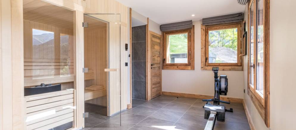 On the ground floor is also a small wellness area with a sauna and outdoor hot tub.