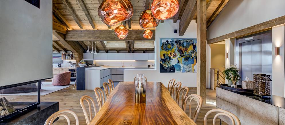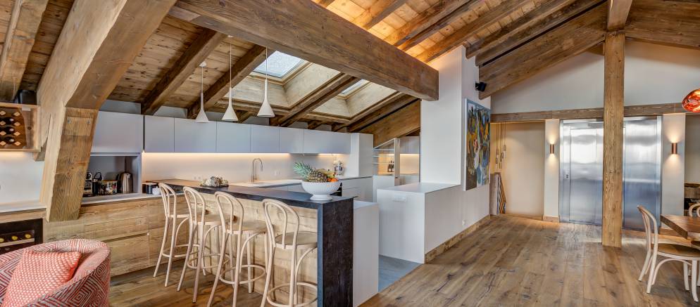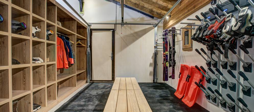 The three floors of the chalet are all connected by both stairs and an elevator, and there is also a garage with the addition of ski racks and heated boot warmers.