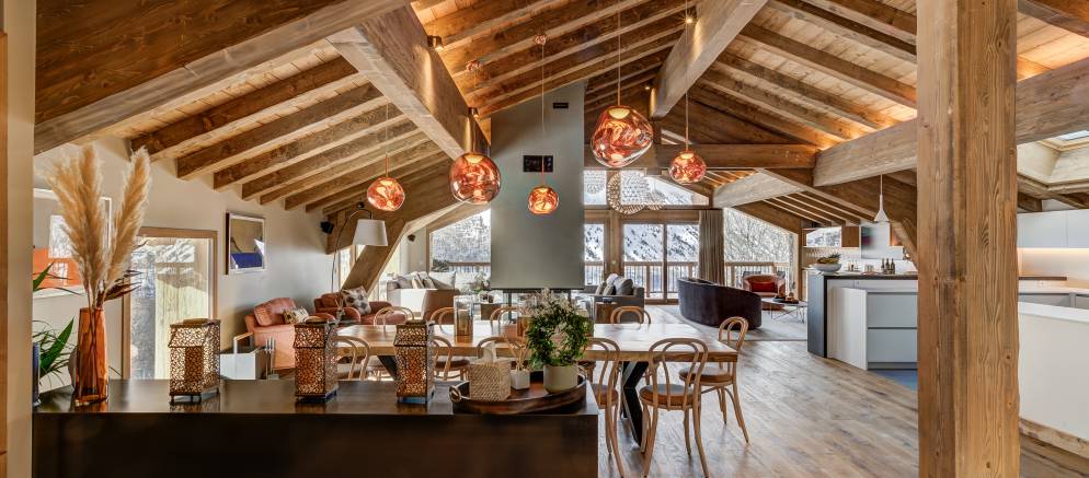 Chalet Constantia, located in the charming alpine village of St Martin de Belleville, is a new chalet built for the 2022/23 winter season. A stand-alone chalet arranged over three floors, the traditional exterior of warm wood and stone is contrasted with a modern and eclectic interior. Sleeping up to 12 adults and 4 children it is the perfect chalet for large group and family holidays.
