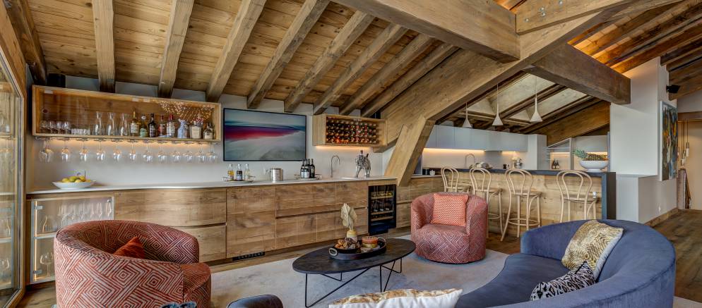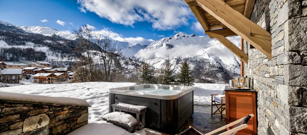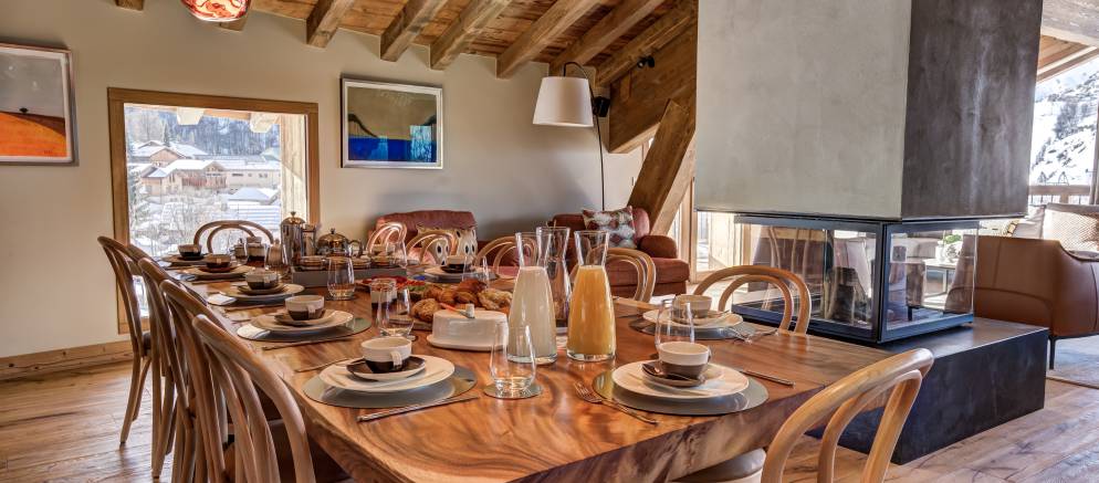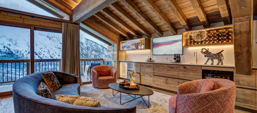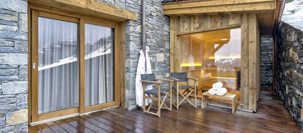 After returning from your days skiing, you can enjoy the chalets entertainment and spa facilities. There is a dedicated cinema room for cosy movie nights in, and outside on the terrace a sauna and hot tub that is both private and affords panoramic mountain views. Your dedicated chalet team will ensure you are extremely well looked after, and your chef will create delicious food throughout your stay.