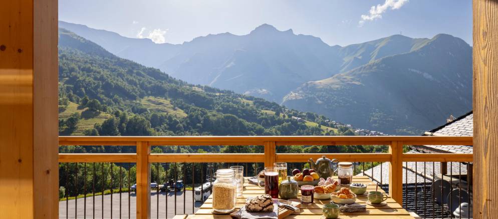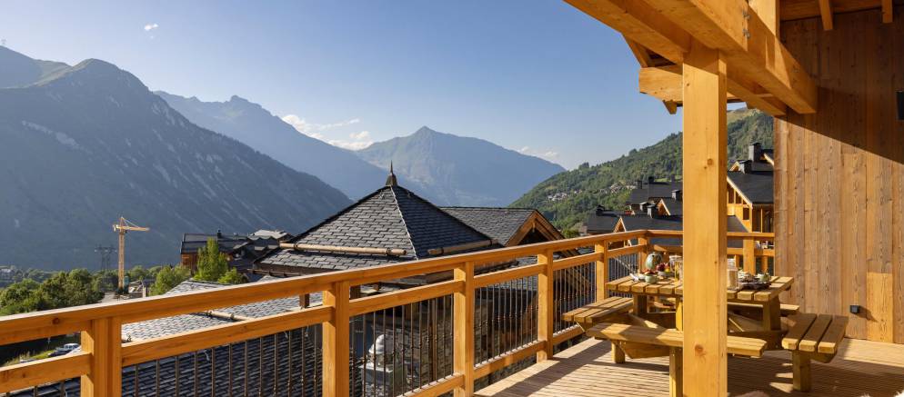 Chalet Noor is a luxury ski chalet in St Martin de Belleville and part of the conveniently located Caseblanche development. Located just 100m from the blue Biolley home slope, this almost ski in ski out location allows you to maximise your time on the slopes of the 3 Valleys ski area. Inside the interior is cosy and homely, and the elevated setting offers fantastic views over the valley and mountains.