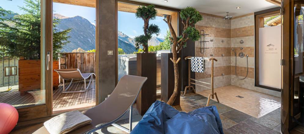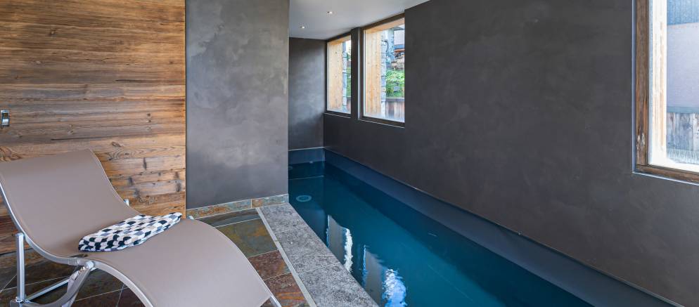 The chalet is perfectly presented with double height ceilings, a huge open fire, 5 spacious comfortable bedrooms and is equipped with home cinema, sauna, steam room and an indoor swimming pool with spectacular views of the surrounding Alps. New for the 2019/20 winter season is an outdoor hot tub located on the terrace of the spa area.