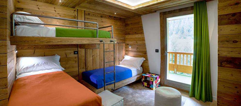 Triple bunk room with balcony and separate bath and shower room shared with bedroom 3.
