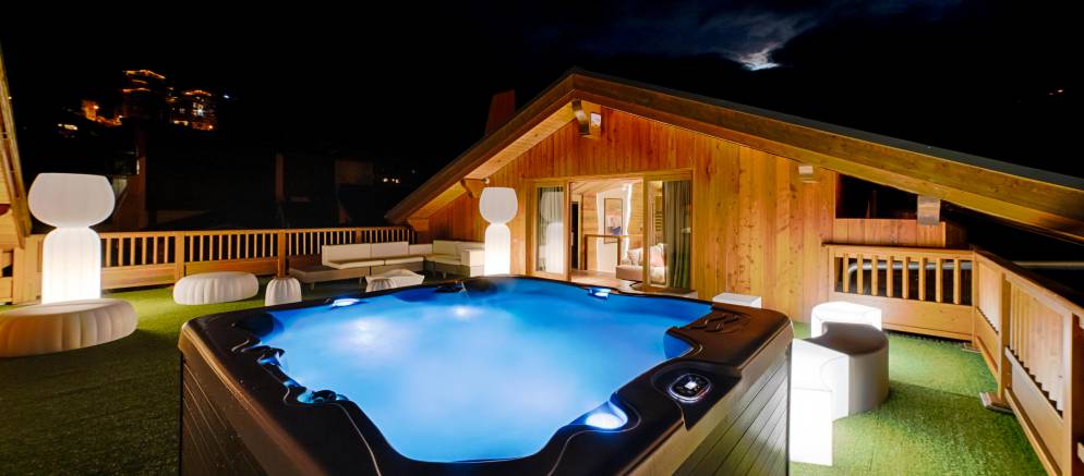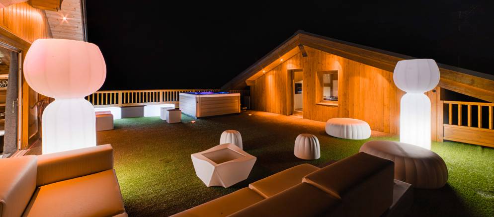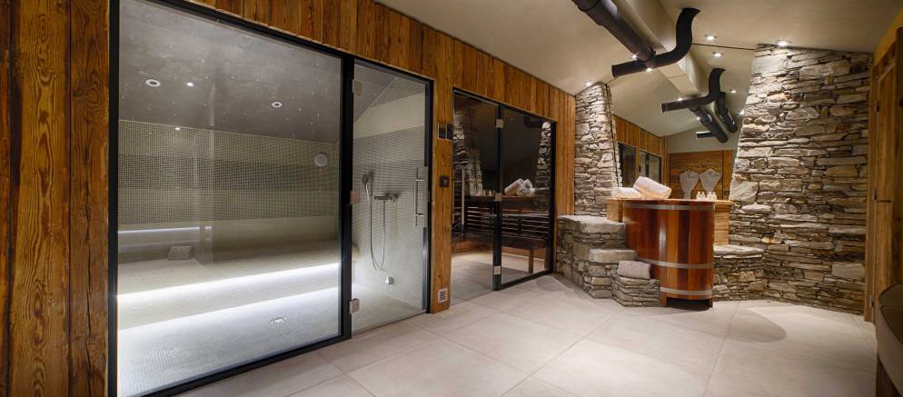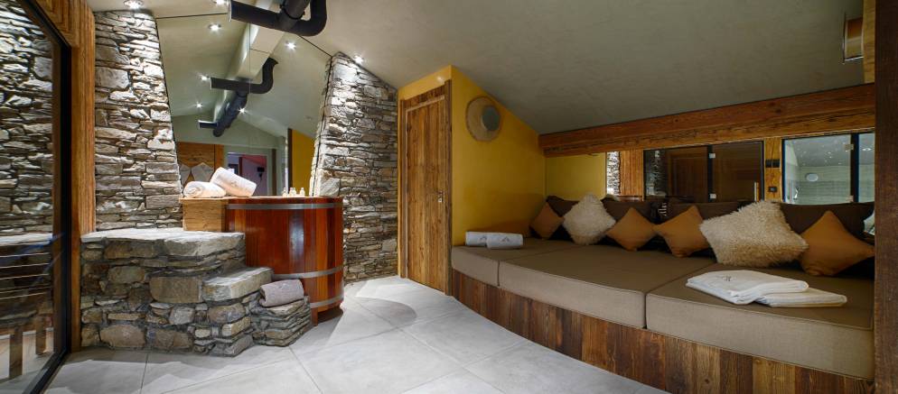 From here you can step out onto the stunning roof top terrace with seating and feature lighting, and where you can enjoy views of the ski slopes from the hot tub. The terrace then leads you into your own private spa with sauna, steam room, and Turkish bath, after which you can earn a well-earned rest lounging in relaxation area.