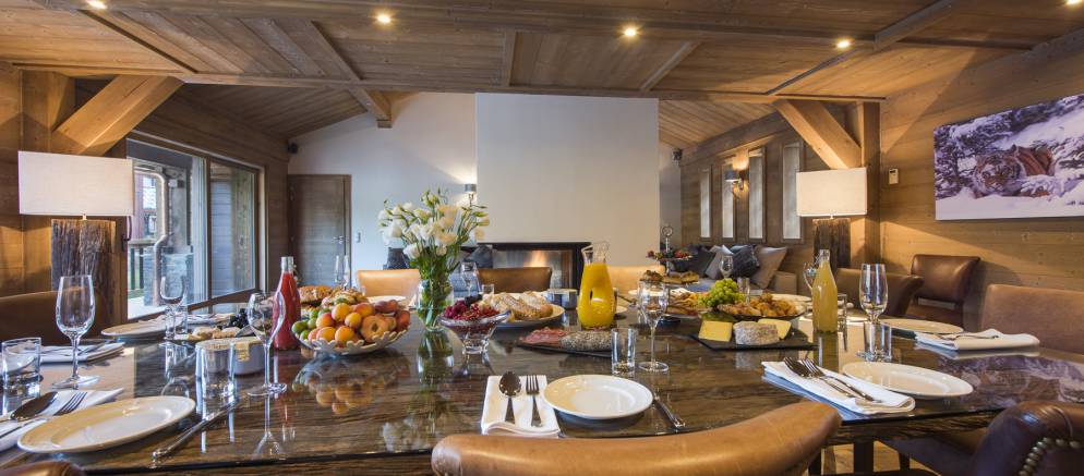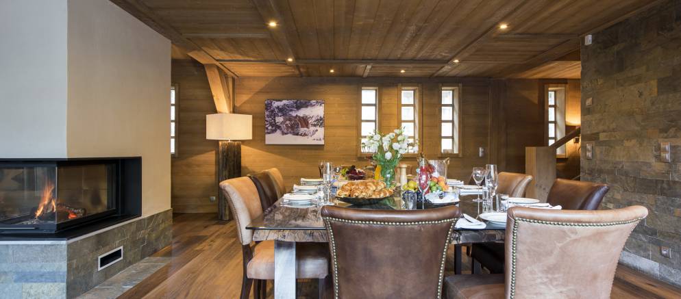 The wonderful open plan living and dining area is bright and spacious with stunning views of the Tovière mountain. A large L shaped sofa sits in front of the impressive fireplace providing a perfect space for the whole family or group of friends to relax and unwind after a hard day on the slopes. There is Satellite TV and a Bose sound system. Dining in Chalet Ambre is an elegant affair; a beautiful chandelier sits above the large dining table, which can sit 10 people comfortably.