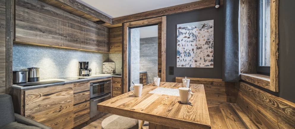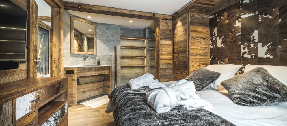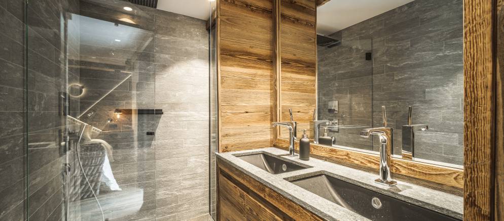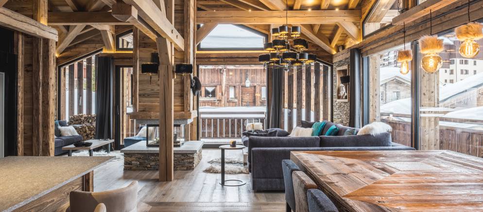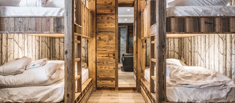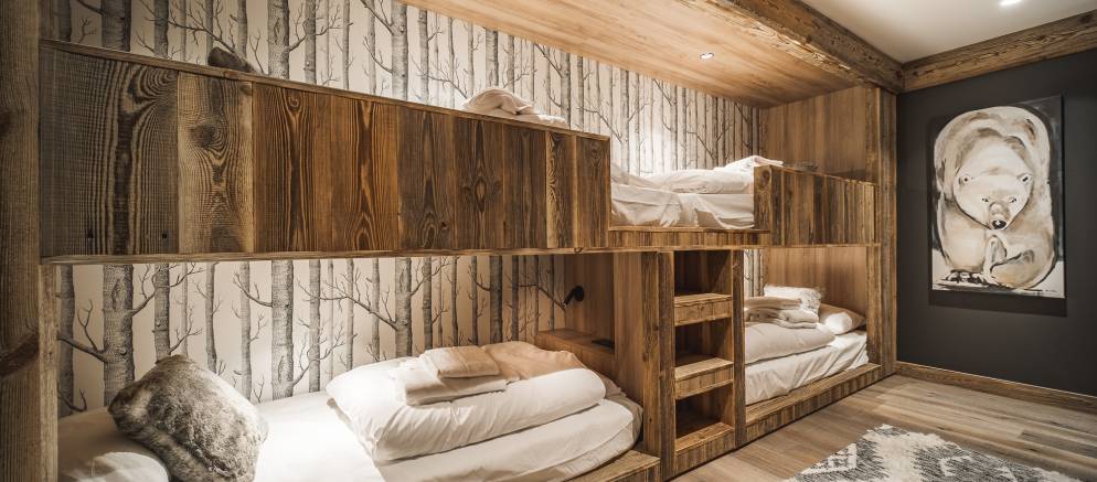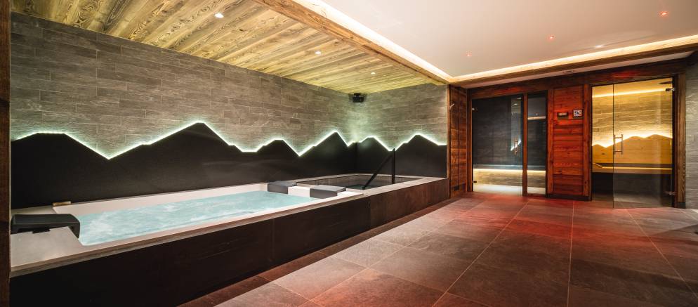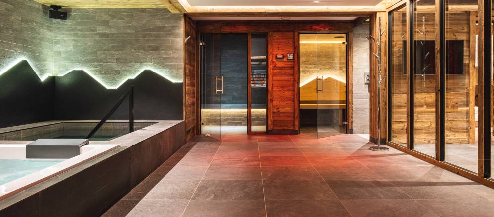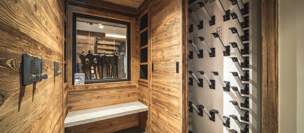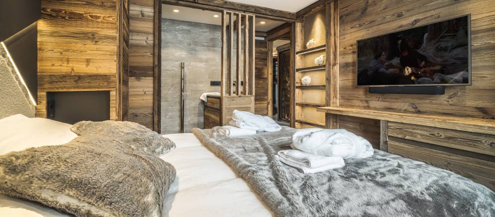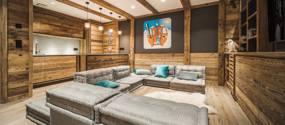 The chalet is arranged over four floors and 370m2 of living space, all connected by both stairs and an elevator. Outside the chalet has a traditional old wood appearance, whilst inside wood and stone are mixed perfectly with modern facilities for a truly comfortable stay. For those driving to resort, there is private garage parking available, so your car will not be covered in snow throughout your stay.