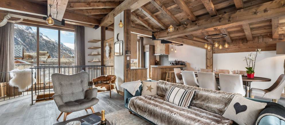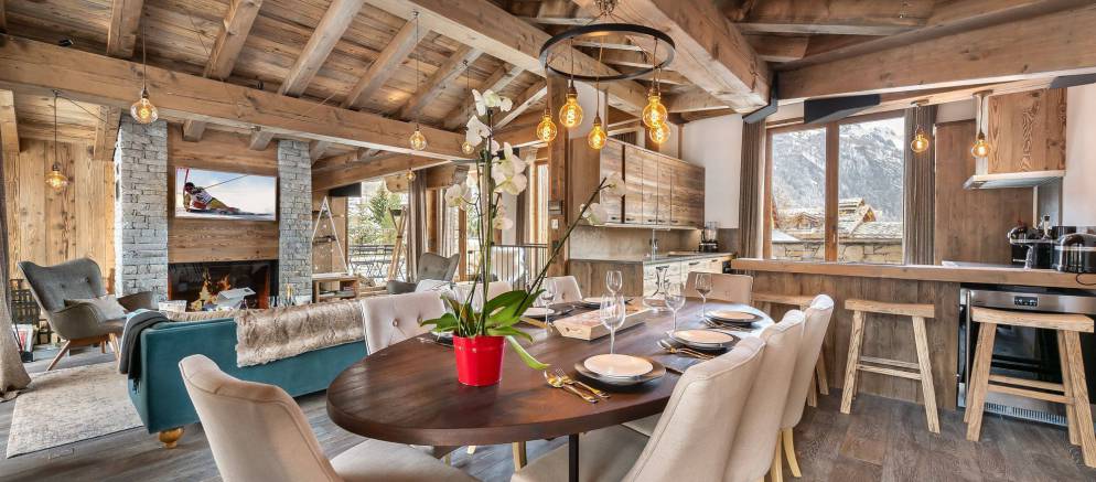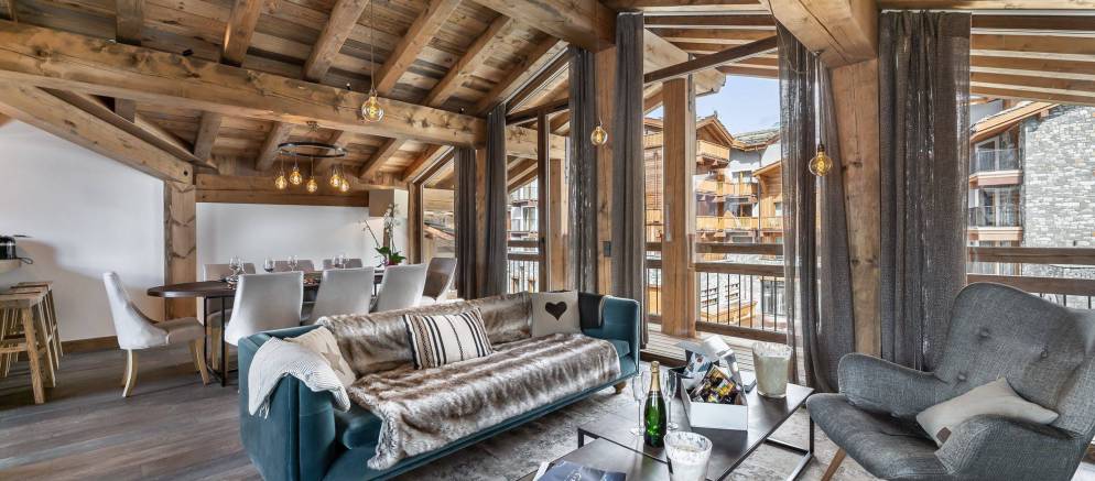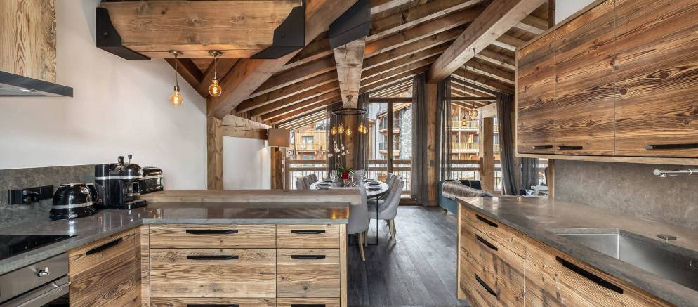 Grizzly 204 is a luxury self-catered apartment in Val d’Isere. This very popular property offers a beautiful interior, outdoor hot tub and convenient location. Inside, the abundant high-quality wood, will make you feel at home in the Alps, cosy and cocooned by the subtle lighting, and magnificent ceiling with exposed beams.