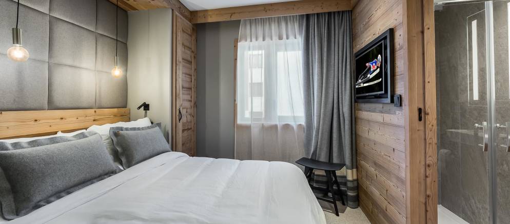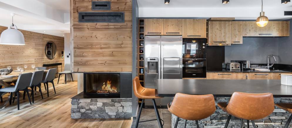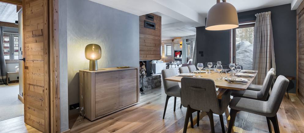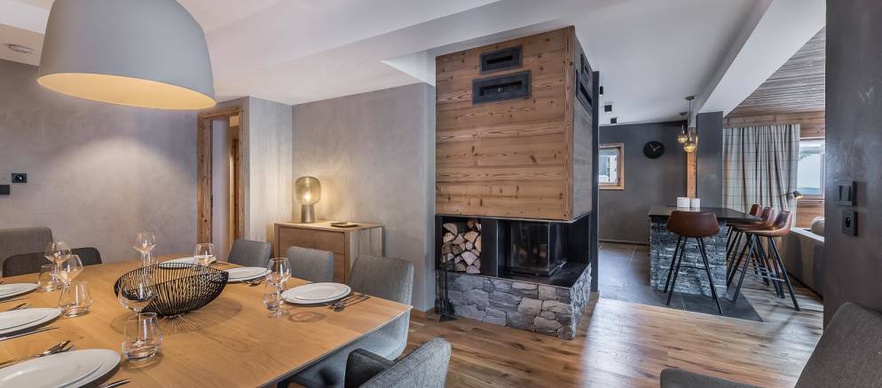 In a residence built in 2017 it lies just a short walk from the very centre of town, in a highly sought after location in Val d’Isère. The contemporary design and furnishings mixed with the traditional feel of exposed wood and feature fireplace combine to make this property a true taste of the sophistication that Val d’Isère has to offer.