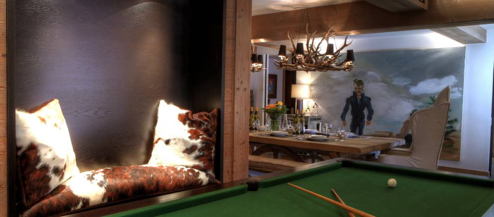 There are many areas to the chalet so you can be on your own or with others to enjoy a movie in the snug TV room, reading a book quietly, playing a game of pool while enjoying the amazing scenery or having a relaxing massage in the private massage room. The chalet is equipped with mood lighting and an extensive technical music system.