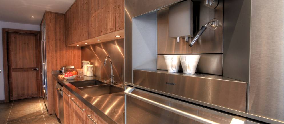 The kitchen is large, and very well equipped with double gaggenau oven, microwave, two dishwashers, coffee maker and toaster, plus a large fridge and freezer.