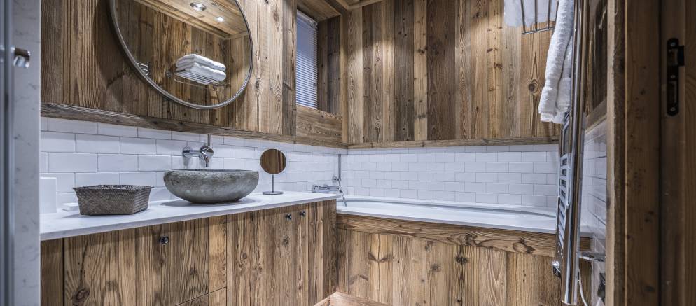 The chalet is characterised by large spaces laden with light plus exposed beams, local pine wood walls and ceiling, baked clay in lounge and dining room, oak in bedrooms plus luxurious Italian marble in bathrooms. Every detail counts to create a cosy Savoyard atmosphere with vibrant Provence touches.