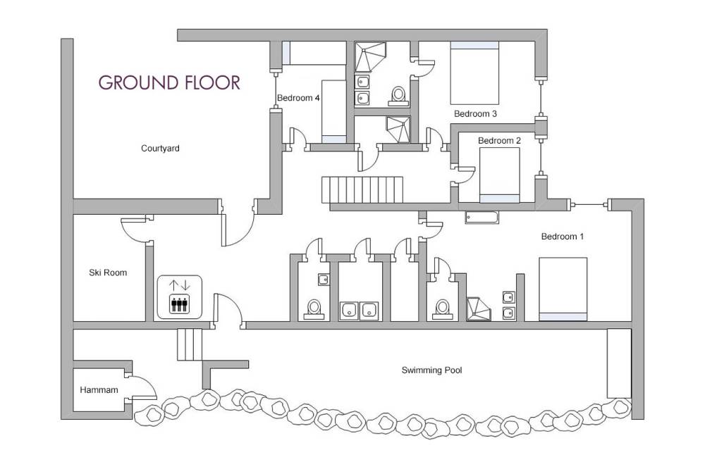 The chalet is extremely spacious with lots of natural light coming through the large windows, and furnishings and decoration are modern and tasteful. For those who’ve truly had a very hard day on the slopes, there’s a lift to take you between the ground and first floors. The ground floor features a wellness centre, with a hammam and good sized swimming pool. There is a ski room with boot warmers and lockers.