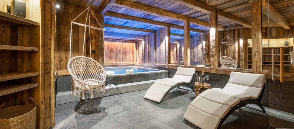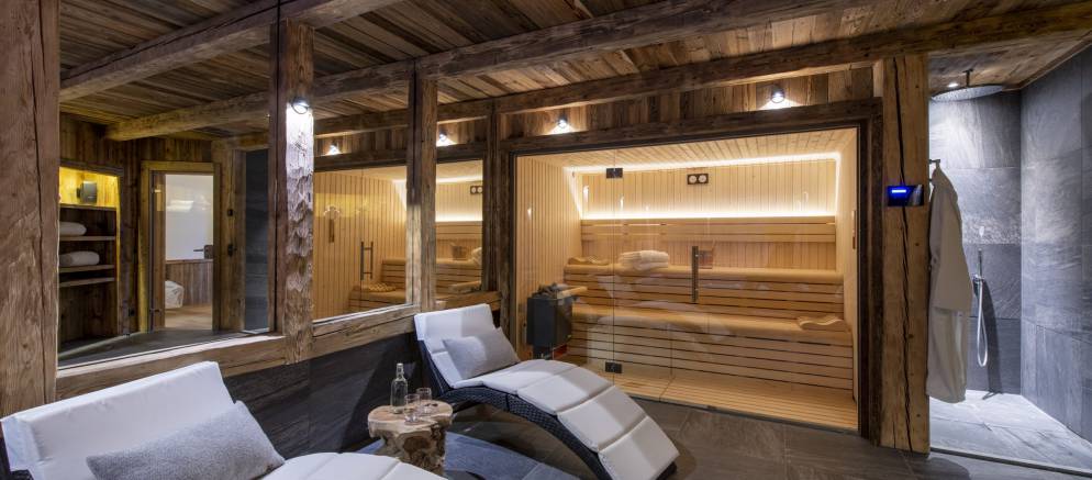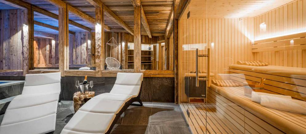 The five en-suite guest bedrooms are spread between the chalets four floors, and the layout gives good flexibility for different group configurations. Down on the lower ground floor is your private spa area with large sunken hot tub, spacious sauna and relaxation area where you can recline and unwind and enjoy some “me time”.