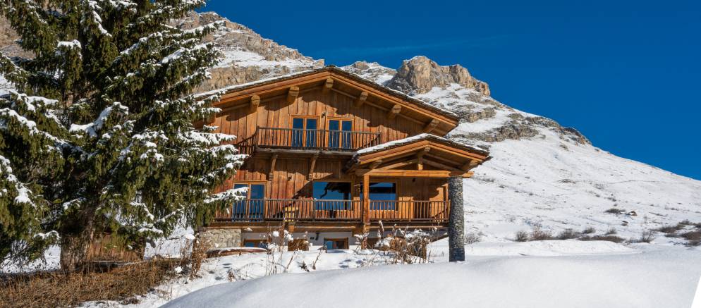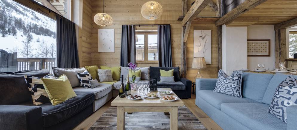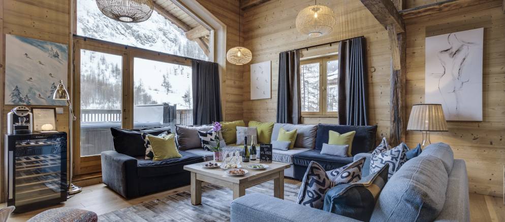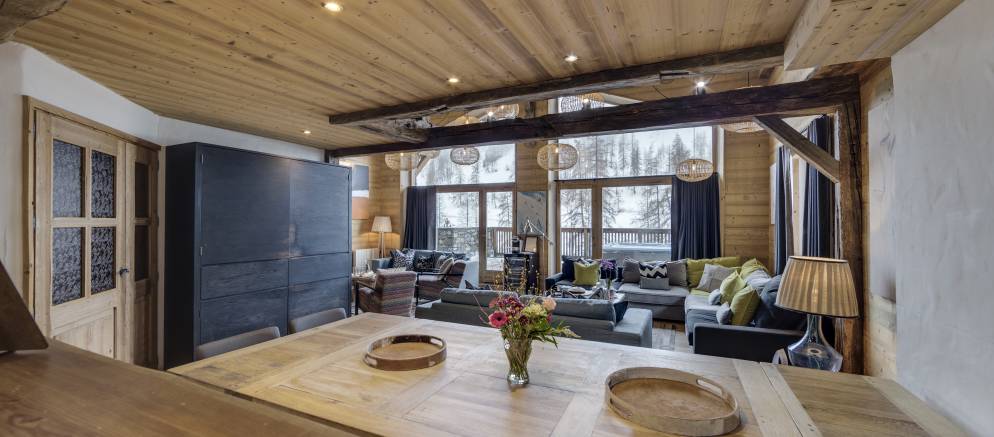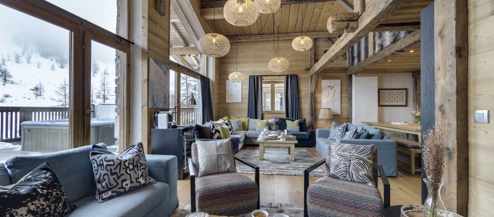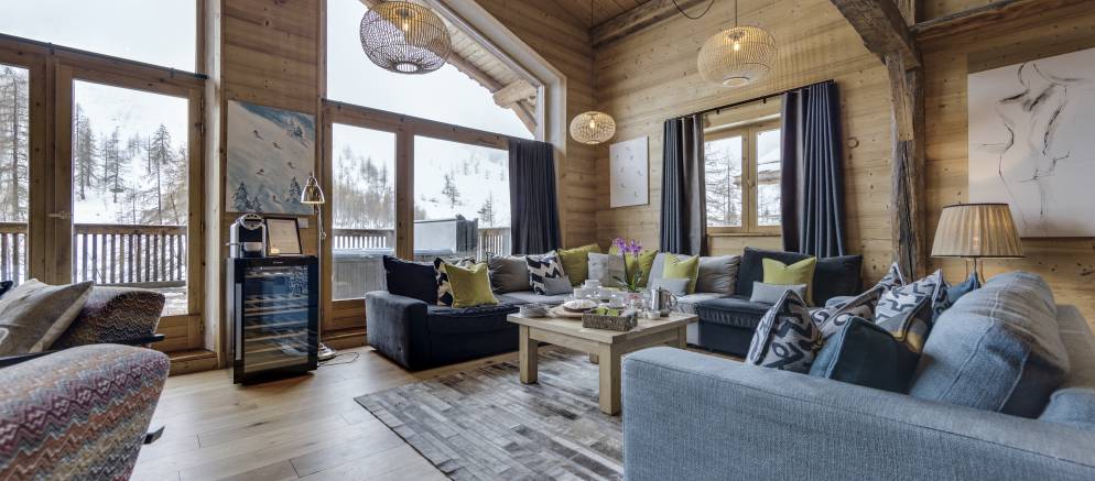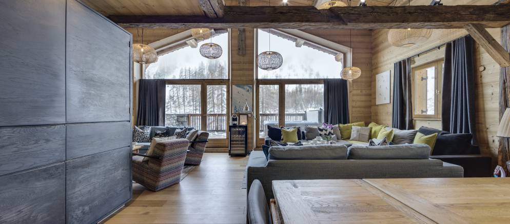 This is the perfect choice for a group of family or friends seeking a ski in ski out catered chalet in Val d’Isère. This stone-and-timber chalet is found on the edge of the Santons piste so you really can click in and out of your bindings just a few steps up from the ski room door.