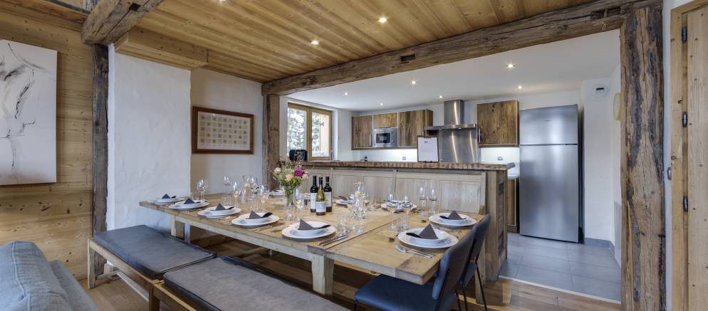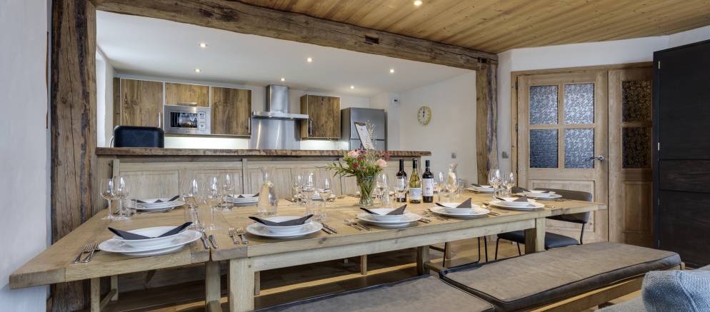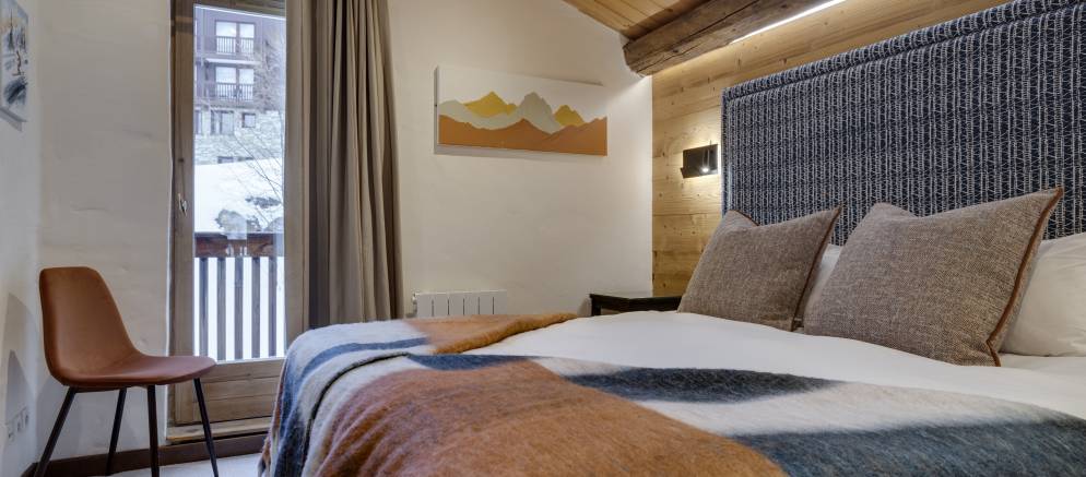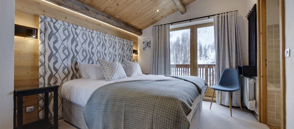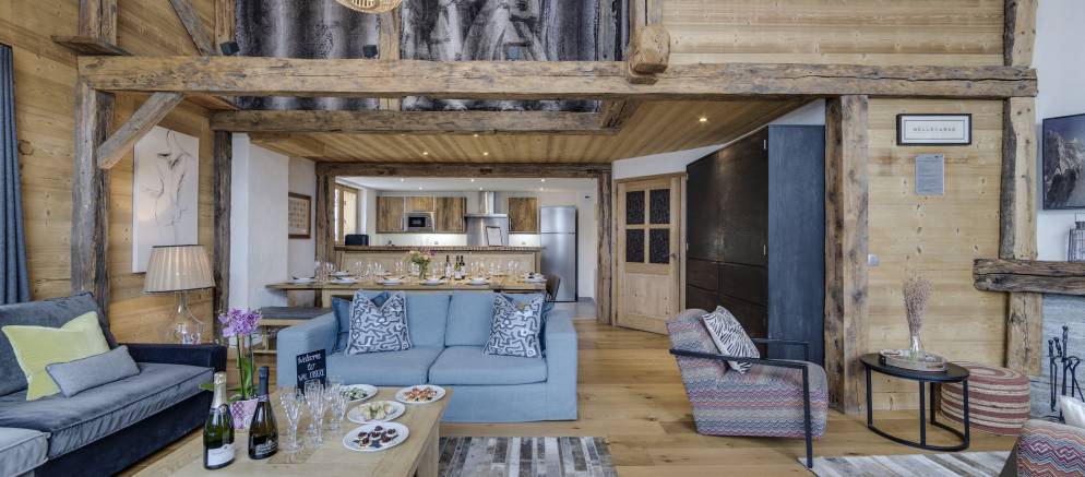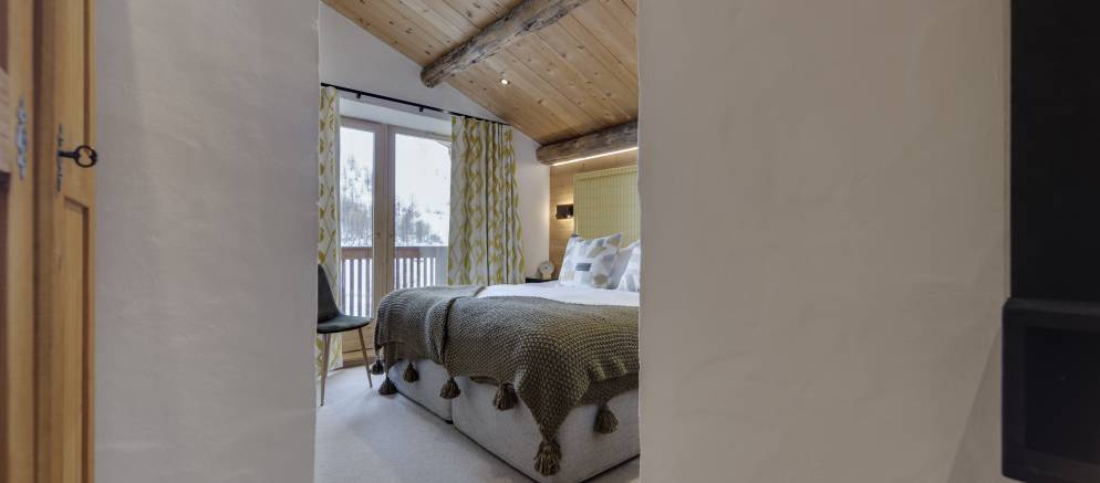 No 1 Bellevarde has been built using genuine old timbers from a local dismantled farmhouse, and oozes charm and character. The vaulted sitting room has an open fireplace, floor to ceiling glass and plump and inviting sofas from which to enjoy the breathtaking view. After a hard day on the slopes, the terrace hot tub is the perfect venue for beer and bubbles.