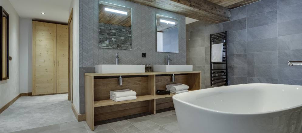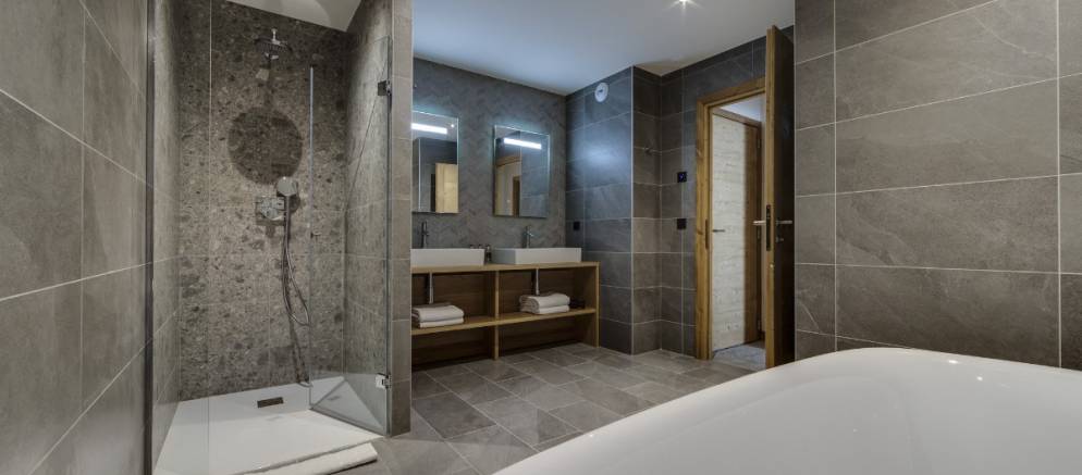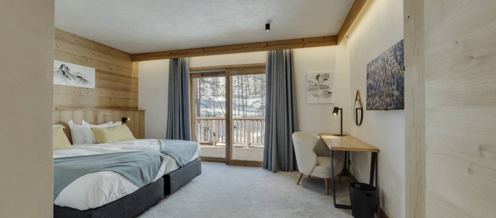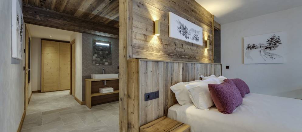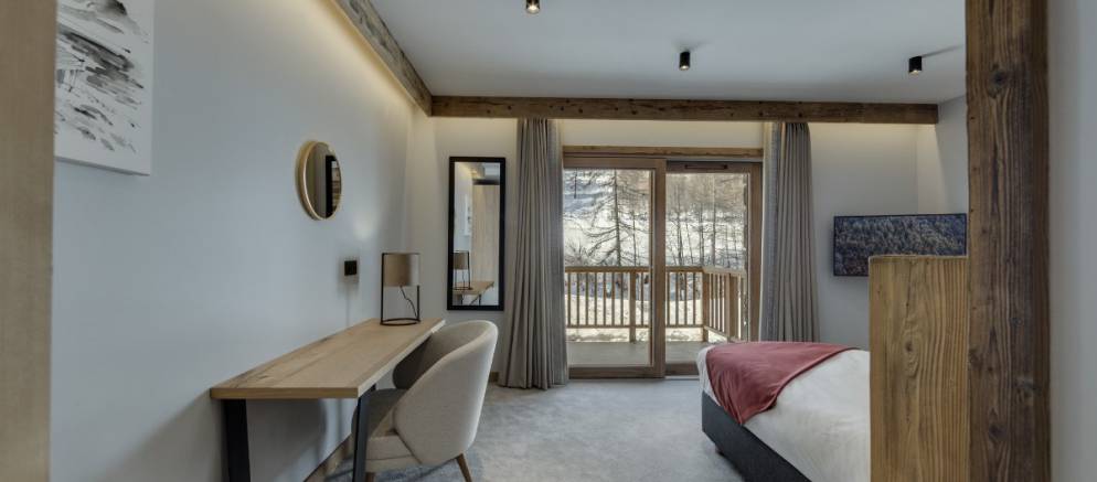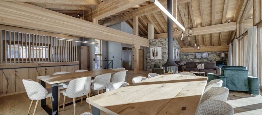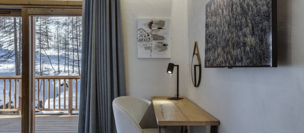 No 8 CLUB Bellevarde is a new addition to our collection of piste-side Hameau de Bellevarde chalets in Val d’Isere. The property may look modest from the outside, but step inside and it opens out into a large chalet arranged over four floors. The chalet overlooks snow covered mountains, forests, and a mountain stream. Opposite the chalet are steps up onto the Santons piste, offering ski in ski out access just 50m away.