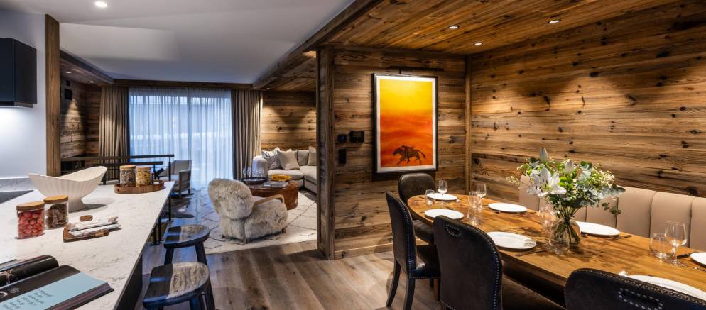 Silverstone Lodge is a luxurious residence with an exceptional ski in ski out location in Val d’Isere. Inside there are six stunning chalet-like apartments ranging from 4-bedrooms to an amazing 7-bedroom penthouse on 4 levels, with its own private indoor swimming pool. This prestigious residence features high-end amenities, traditional mountain design as well as a personalised service.
