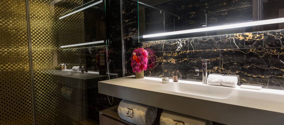 Junior suite with double/twin bed with en-suite shower room (separate WC), balcony access, dressing room, sitting and office area.