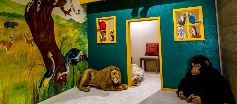For those who need to keep connected with the outside world, the chalet’s business centre and library are at your disposal. To the lower floor guests will also discover the ski and boot room, another wine cellar and also a games playroom. The activity room with large animal toys and safari mural with delight the youngest of children and the amusement arcade with foosball an escape for those young at heart.