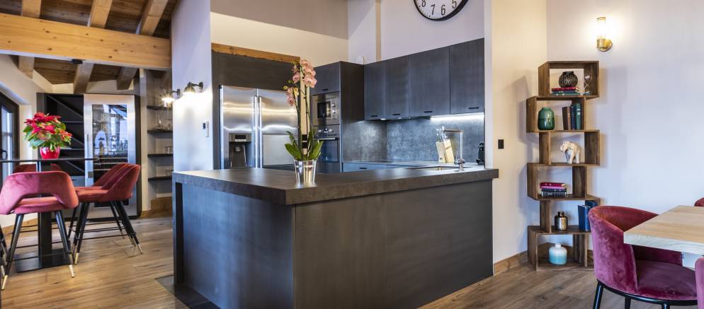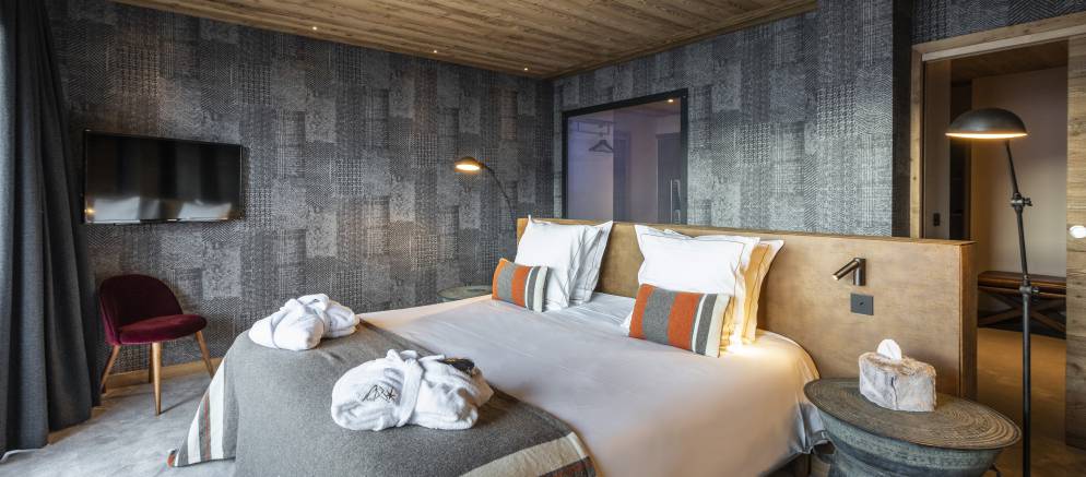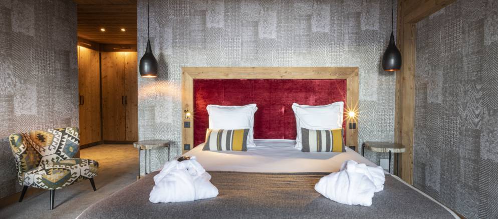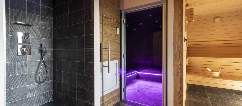 Stepping down one floor and you will discover the private spa facilities. After enjoying some serious après ski at the infamous Folie Douce, unwind and rejuvenate in the warmth of the sauna and steam room. There are also 2 double / twin bedrooms on this floor, one with a south facing balcony. A further floor down is an additional double / twin bedroom as well as the master suite with large dressing room and wrap-around balcony with mountain views.