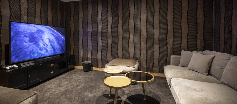 On the entrance floor of the chalet is the fifth bedroom which is a twin room and is perfect for 2 children. This room has an en-suite shower room. The ground floor also features a dedicated cinema room that provides a great space for children, or a relaxed night in with the latest blockbuster movie. For those who are keen for further exercise even after a day’s skiing in the 3 Valleys, there is a private gym / fitness suite.