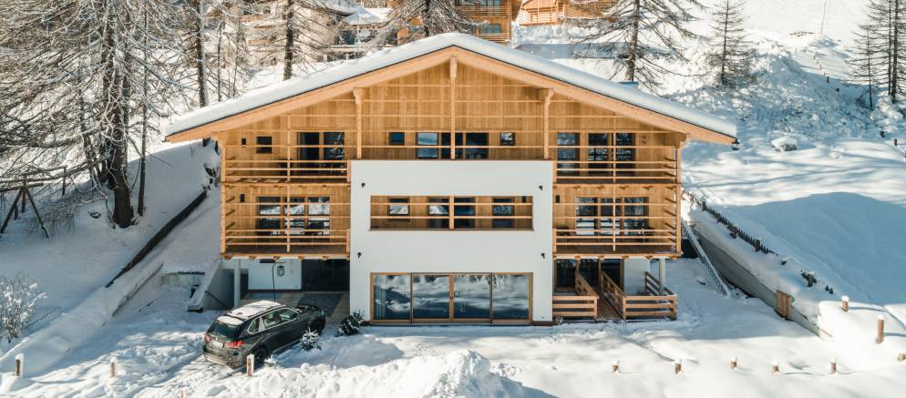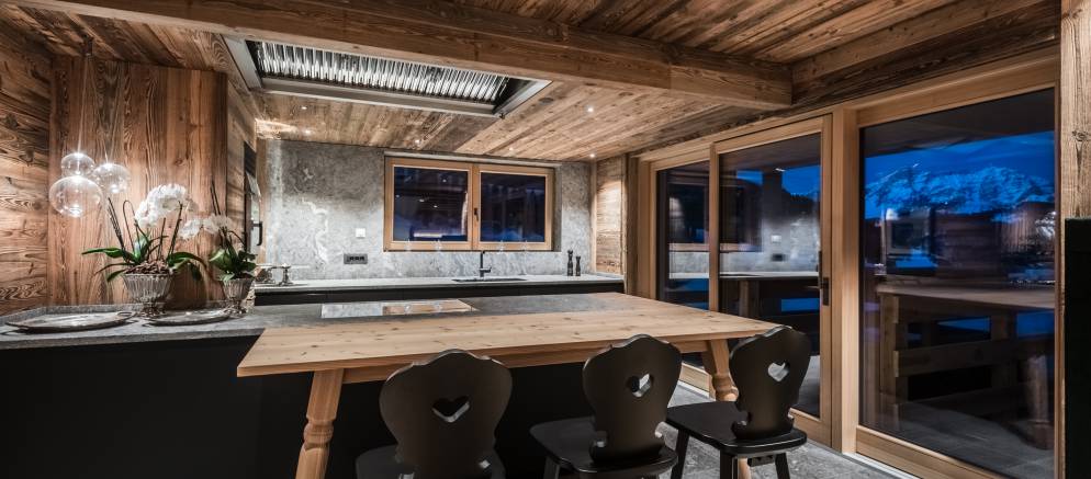 If you book the entire chalet, you can enjoy all the floors just for you and your family and friends. The open plan living spaces are arranged with a modern kitchen with breakfast bar, lounge/dining room with feature fireplace and panoramic views. The outside patio is the spot for pre-dinner aperitifs or simply to drink in the fresh alpine air.