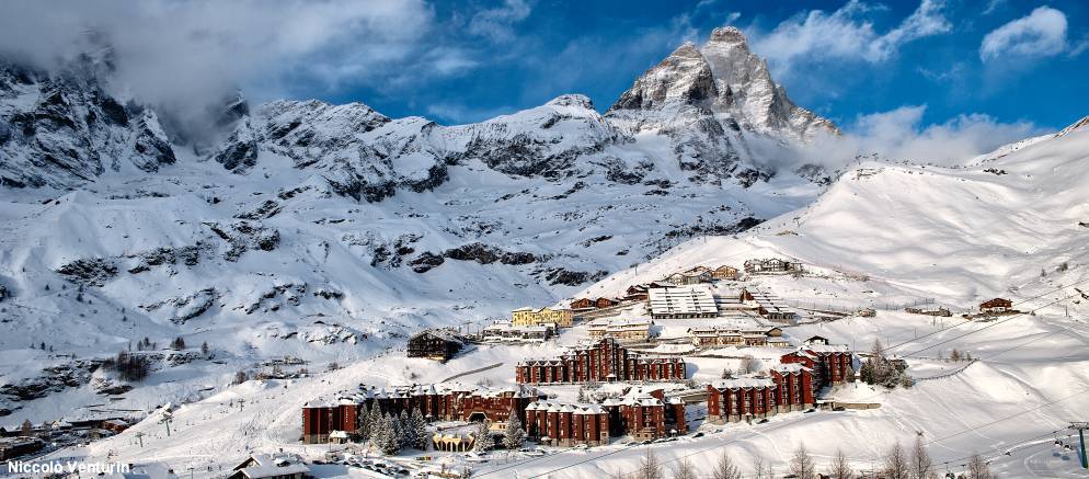 Cervinia, located on the Italian side of the famous Matterhorn mountain, shares its extensive ski area with Zermatt located over in Switzerland. Situated at an altitude of 2,050m, this snow-sure ski resort offers a wonderfully array of long and gently ski slopes that are just perfect for intermediate skiers. Sunny slopes and spectacular scenery just add to appeal, whilst the altitude makes it a great choice for early and late season ski holidays.