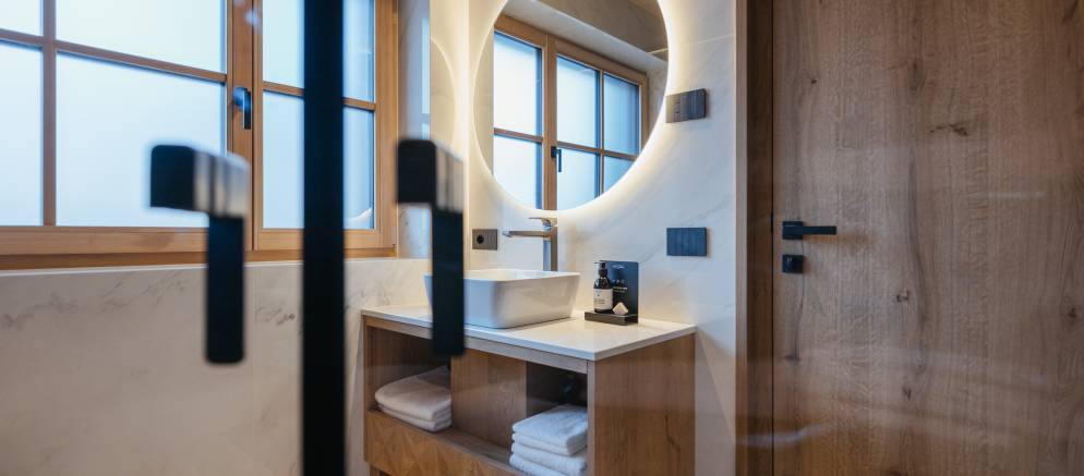 The basement of the chalet is where you will arrive to if driving to resort and the large garage has parking available for up to four cars, along with Electric car charge points. There is storage for your winter equipment along with ski boot dryers, and if biking in the summer months, storage and charging outlets for scooters and electric bicycles. Afterwards, you can use either the elevator or stairs to access the other floors.