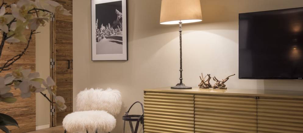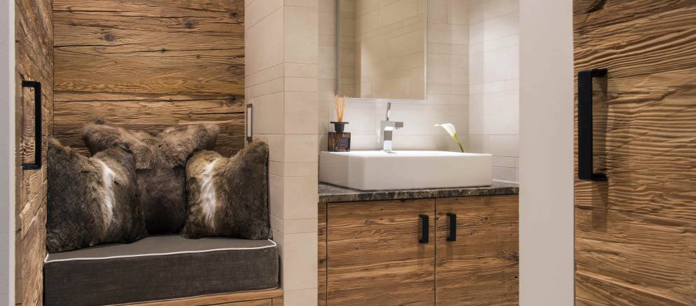 The apartment is decorated in a contemporary rustic style, with aged oak wood floors, panelling and luxurious furnishings and fittings throughout. Rosalp 3 is the perfect hideaway for families looking to be a little self-sufficient, offered on a self-catered basis throughout the season. Lift access is available through the building.