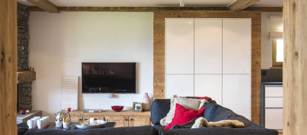 During the colder winter months, there is a wood-burning fireplace creating the perfect alpine atmosphere. The apartment features a Bose sound system and TV system with Apple TV.