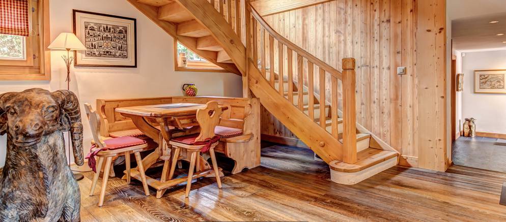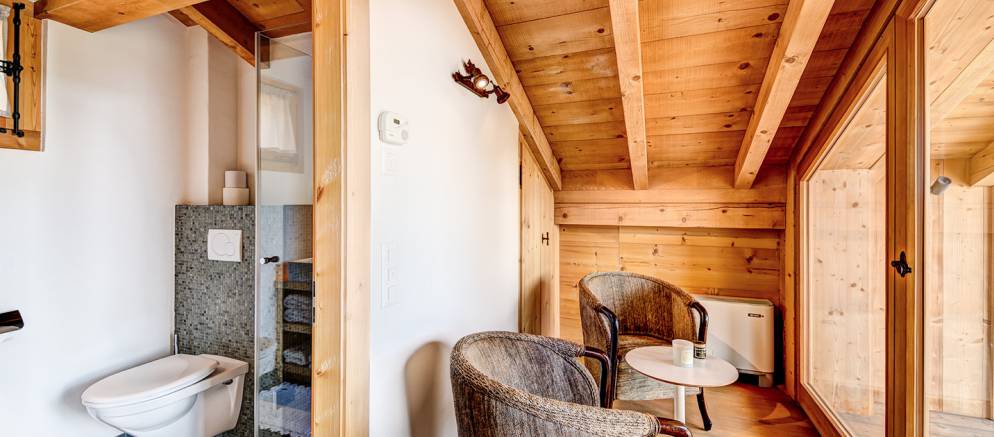 The chalet has a main entrance with vestiaire and a second ski room entrance. On the entrance level of the chalet is a delightful living and dining area with exterior terrace & decking. There is also a separate kitchen, separate guest toilet and a master bedroom with en-suite spa bath.