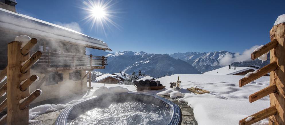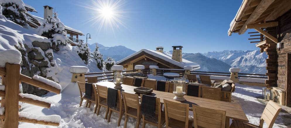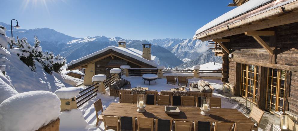 With comfortable seating and relaxing loungers, the extensive south-facing terrace is the perfect place to enjoy the jaw-dropping views across to the Grand Combin.