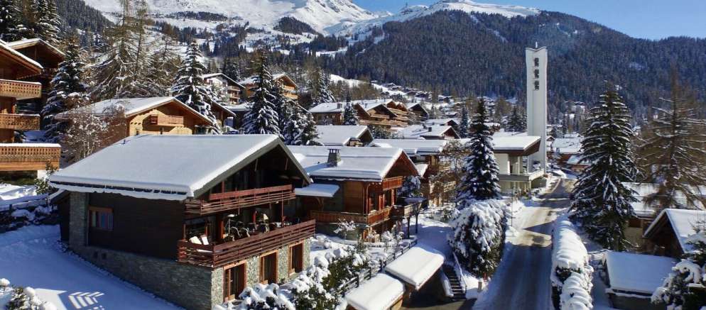 Chalet Ker Praet was built in a traditional Swiss wooden chalet style in the 1950s, with unique custom picture windows that provide breathtaking views of the mountains peaks and the valley. Available on a catered chalet basis, it is located in the centre of the resort, in a quiet street, just a 5 minute walk from the Place Centrale, the commercial and busy heart of Verbier. Additionally, the ski run of “Le Rouge” with the “après-ski” bar and lounge of the same name is only a 3 minute walk from the chalet. A bus stop is also a few meters away.