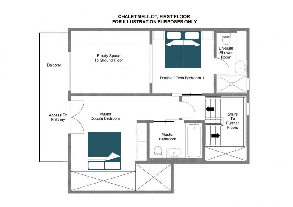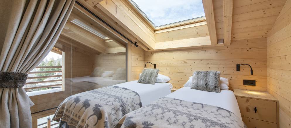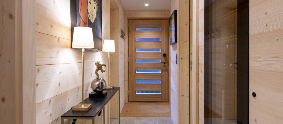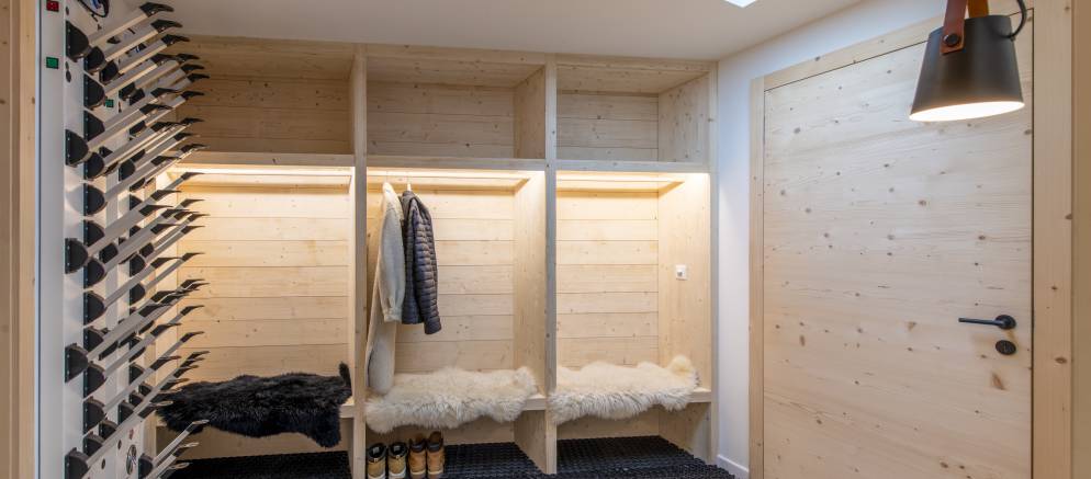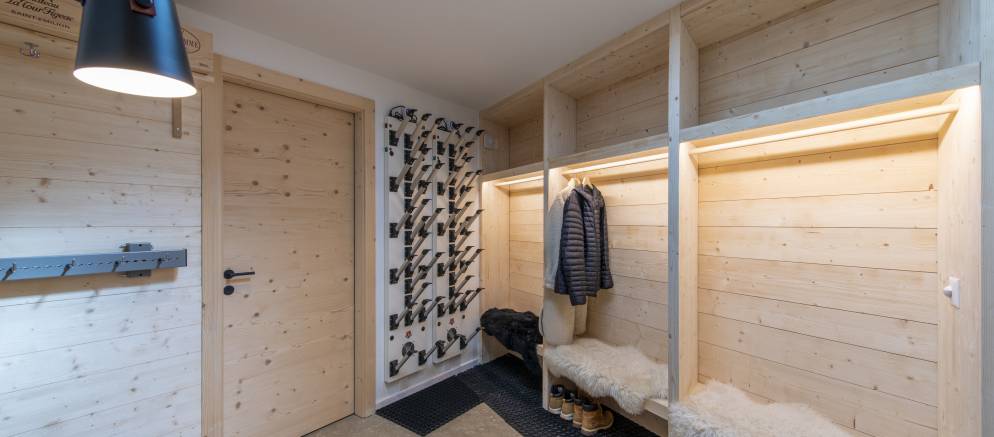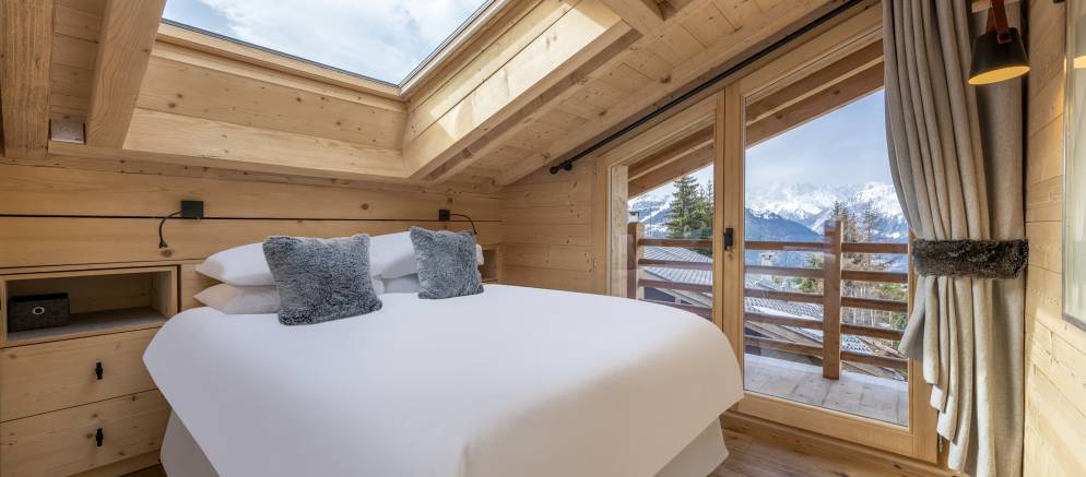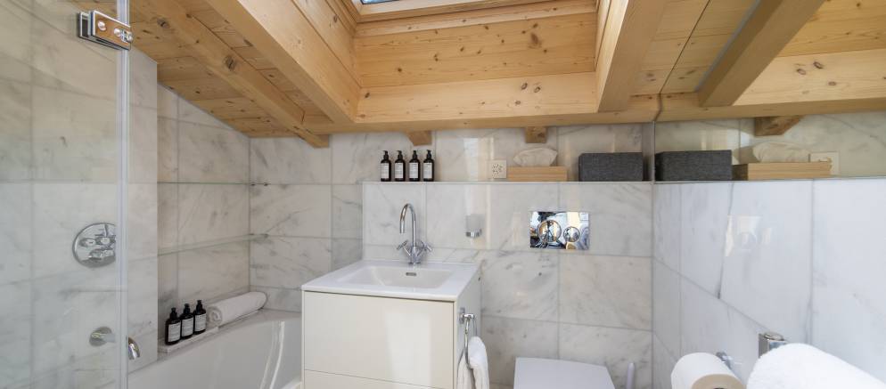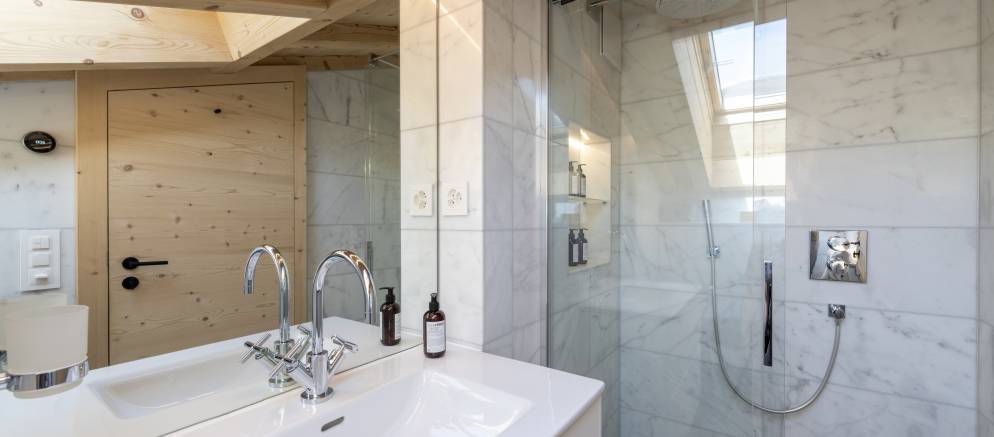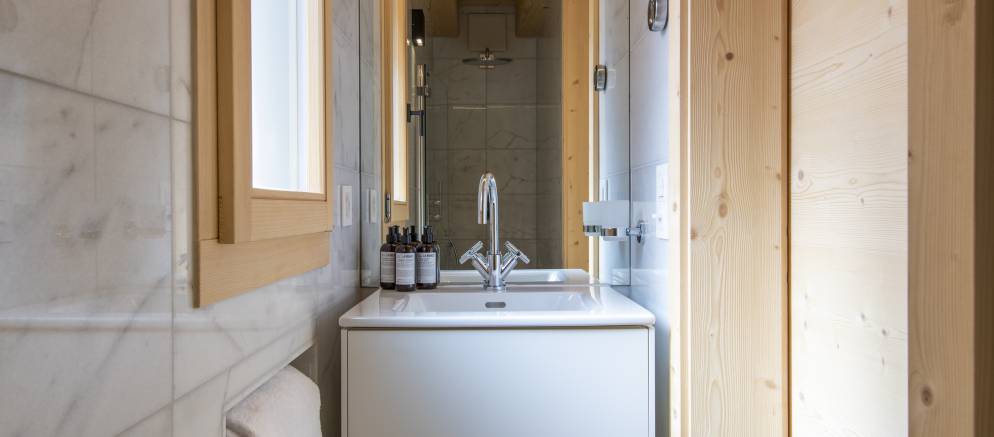 Sleeping 4 guests there are two en-suite bedrooms on the top floor. The master double bedroom has a private balcony, whilst the second bedroom can be arranged with either a double or twin bed. The entrance to the chalet is on the ground floor where there is a ski room with boot warmers, WC, and laundry room with washing machine and tumble dryer.