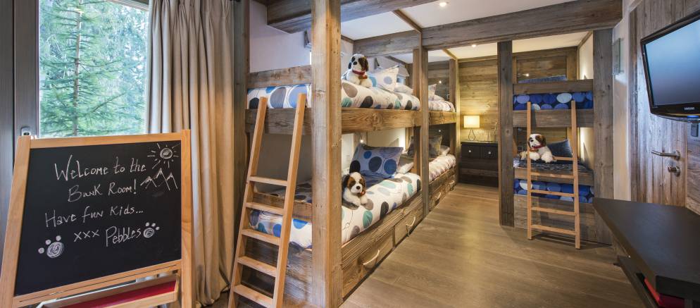 Come evening, if you’re not too tired after a busy day out in the mountains, the dedicated bunkroom is the ultimate youngsters’ hideaway sleeping up to six children with three sets of bunk beds, a separate shower and toilet, a plasma screen TV with DVD player, a games console, and bean bags.