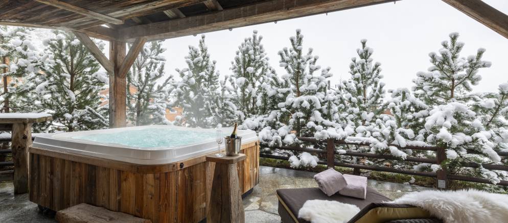 The spacious glass front wellness centre offers a variety of ways to unwind and reinvigorate. Facilities here include a sauna, massage room as well as a relaxation and Pilates/yoga space with ambient lighting and music. Step outside onto the large terrace, sink into the hot tub and take in the last rays of sun as they dip behind the snow-covered peaks.