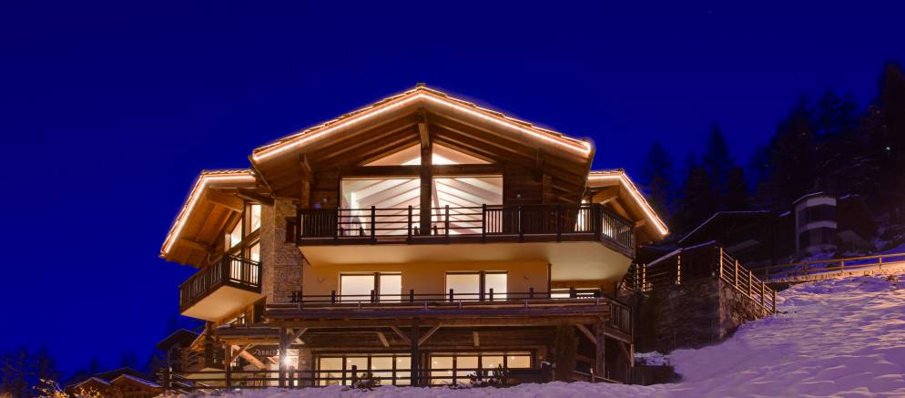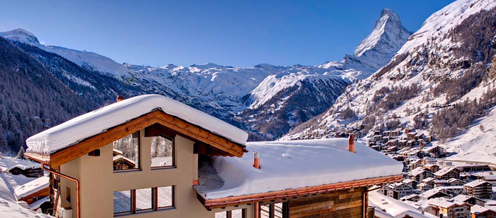 Chic and sumptuous, Chalet Grace, spread over three floors is built to the highest standards. Built on a south-facing hillside the chalet is located in the exclusive Petite Village area of Zermatt.
