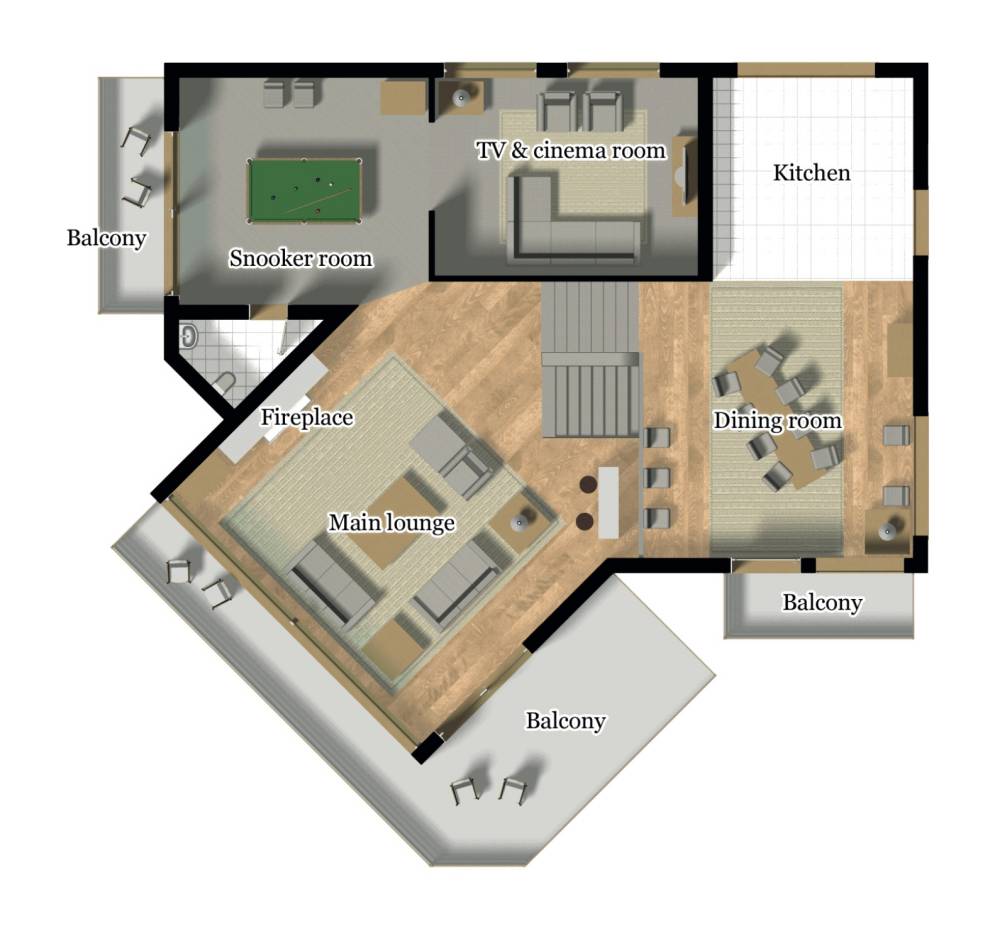 Sleeping up to 12 guests in 5 spacious and luxurious en-suite bedrooms all with sumptuous fabrics and warm deep carpets. The floor to ceiling windows make the most of the stunning views of the surrounding mountains, whilst the dramatic vaulted interior creates a spectacular space in which to relax.