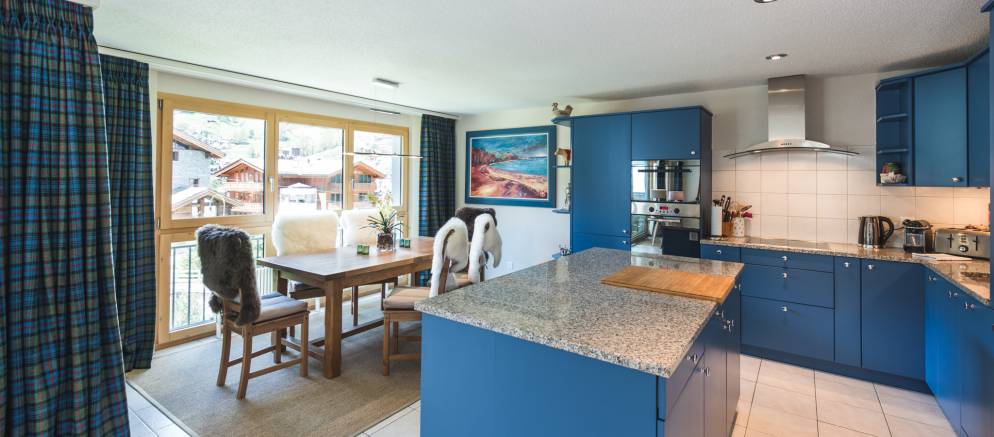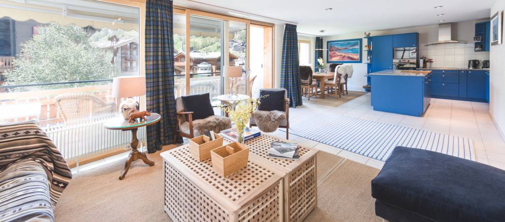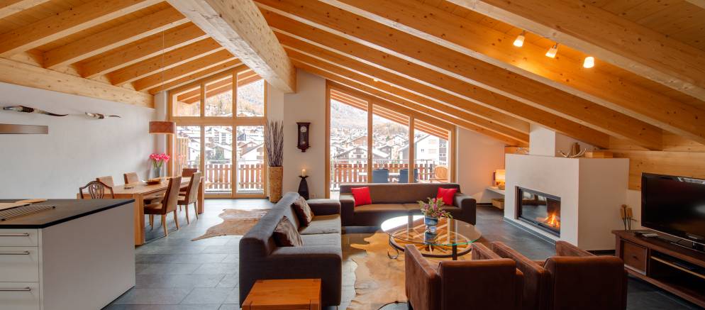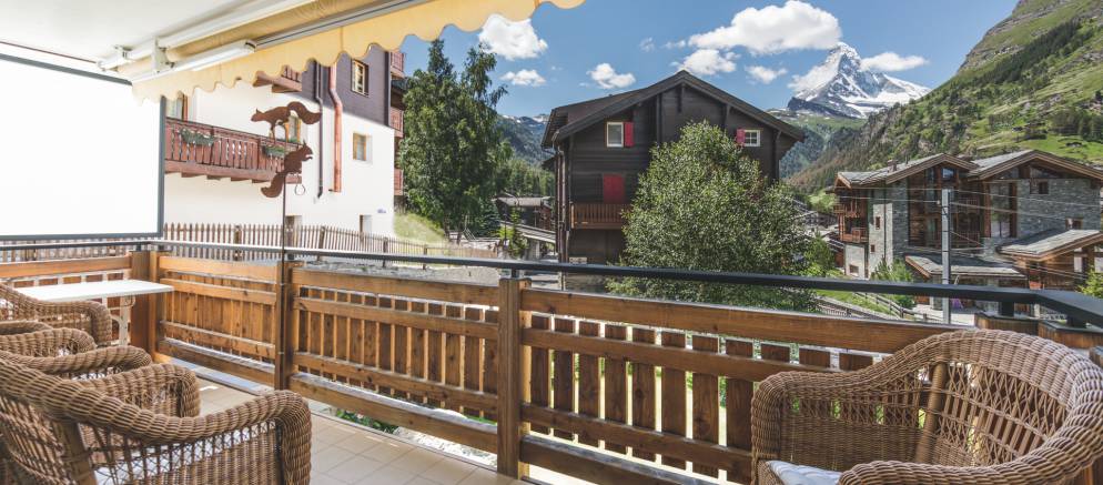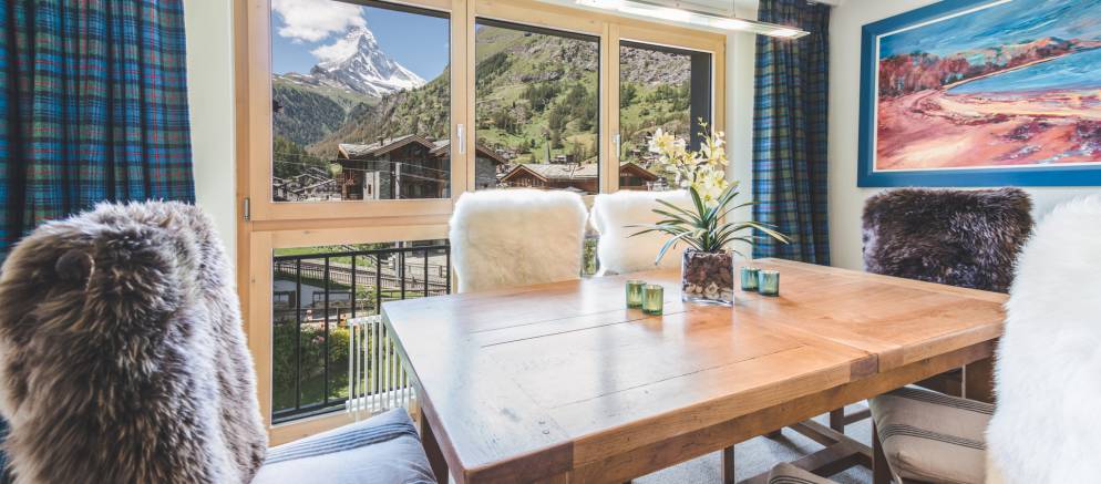Chalet Nevis is a centrally located and sunny apartment in Zermatt. This self-catered property is located on the second floor and has access via both stairs and an elevator. Facing south you can enjoy excellent views over the resort and to the Matterhorn beyond. Nevis is a well-appointed, warm apartment with an excellent location.