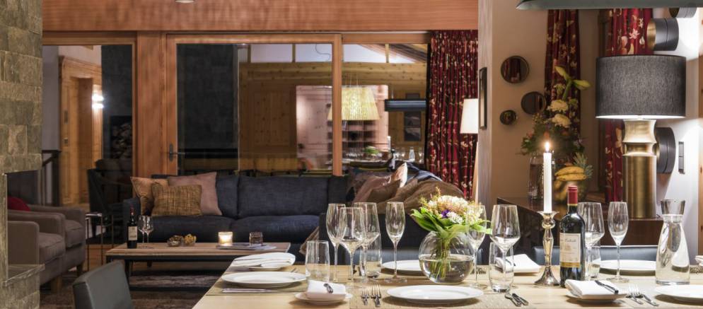 Traditional alpine wood and timber is throughout the chalet and matched with specially selected soft furnishings to create a relaxing and cosy atmosphere. The top floor of Chalet Shalimar is dedicated to the living and dining rooms, which have floor to ceiling sliding doors allowing light to flood in.