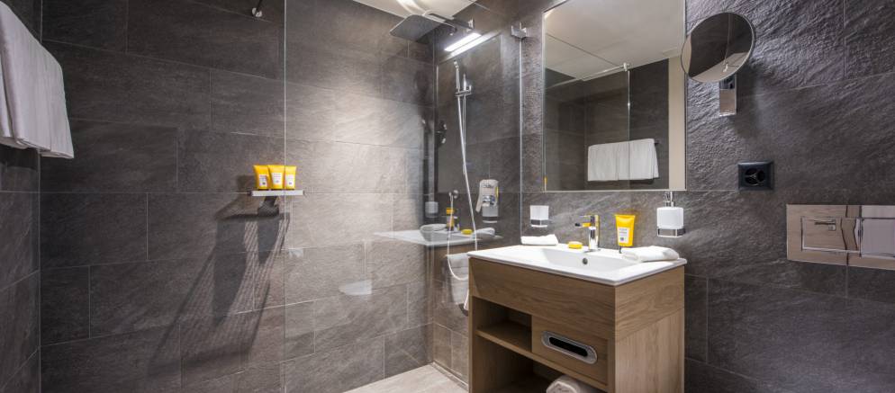 Twin or double bed with TV, desk, terrace access and en-suite shower room.